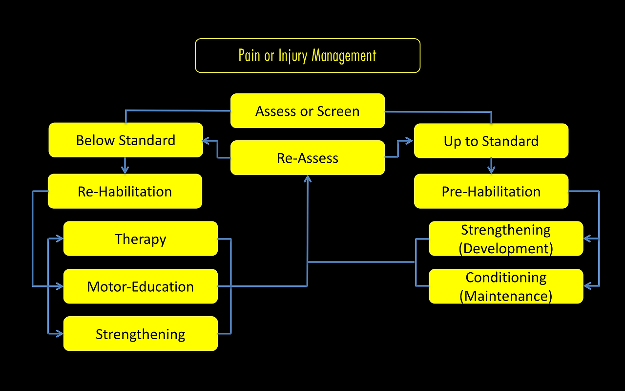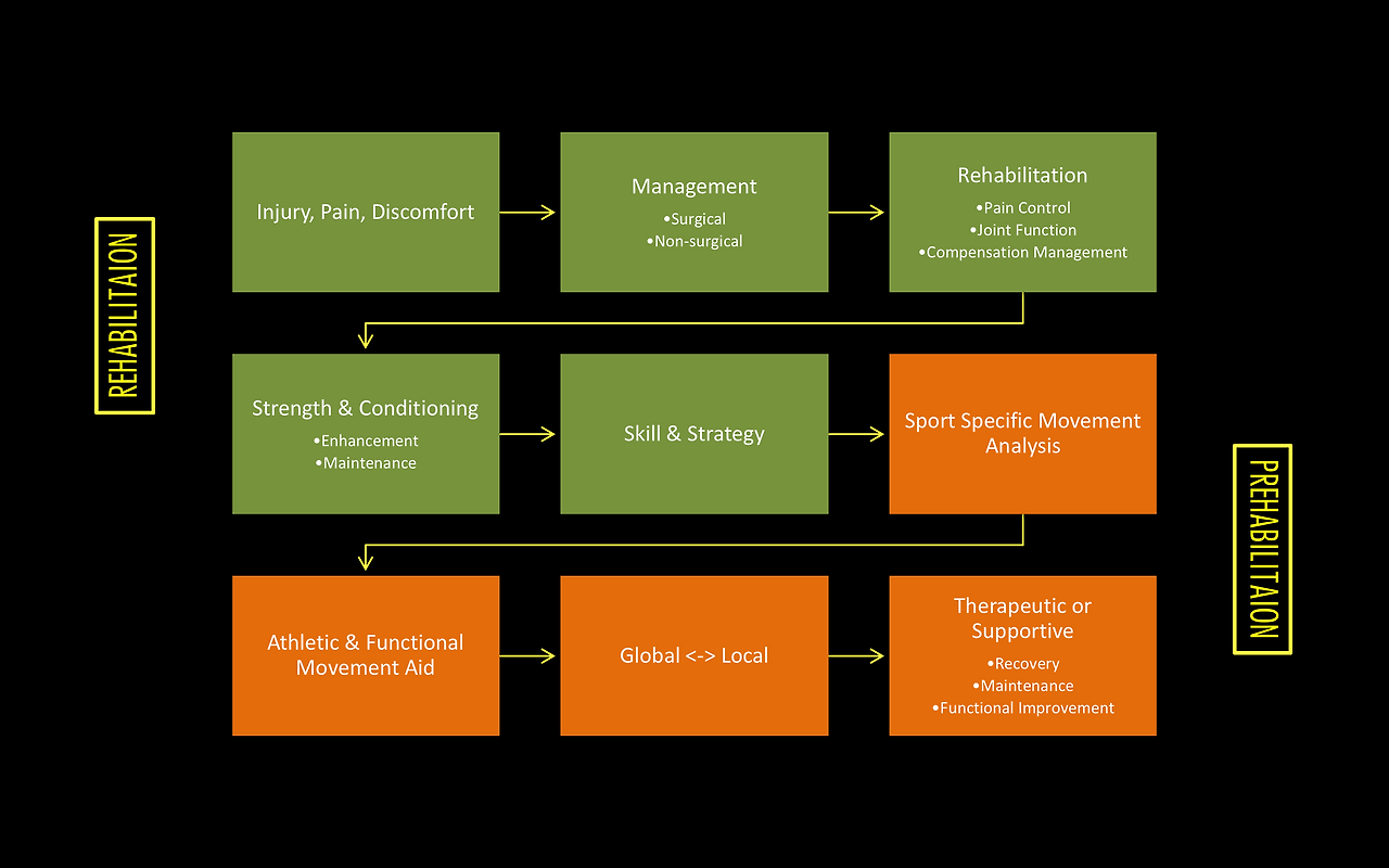 정리를 하자면, 부상을 관리함에 있어서 중요한 것은 부상 (통증) 은 체계적인 진단하에 관리되어야 한다는 것과, 부상을 일으킨 원인에 대한 구조적 / 기능적 분석을 통해 재활팀과 퍼포먼스팀 모두 부족한 부분 (Deficiency) 을 예의주시하여 꾸준히 보완 해야한다는 것이다. 보완하는 과정에 있어서, 프로그램의 완성도를 높이는 가장 근본적인 방법은 검사와 정기적인 재검사를 통해 객관적인 프로그램의 신뢰도와 안정성을 높이는 것에 있을 수 있고, 프로그램의 목적지인 퍼포먼스에 안전하게 도달할 수 있도록 체계적인 트레이닝의 연속체 속에서 관리 감독 되어야 할 것이다.