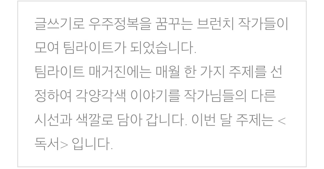 팀라이트 작가님들의 다양한 글을 모아보고 싶다면