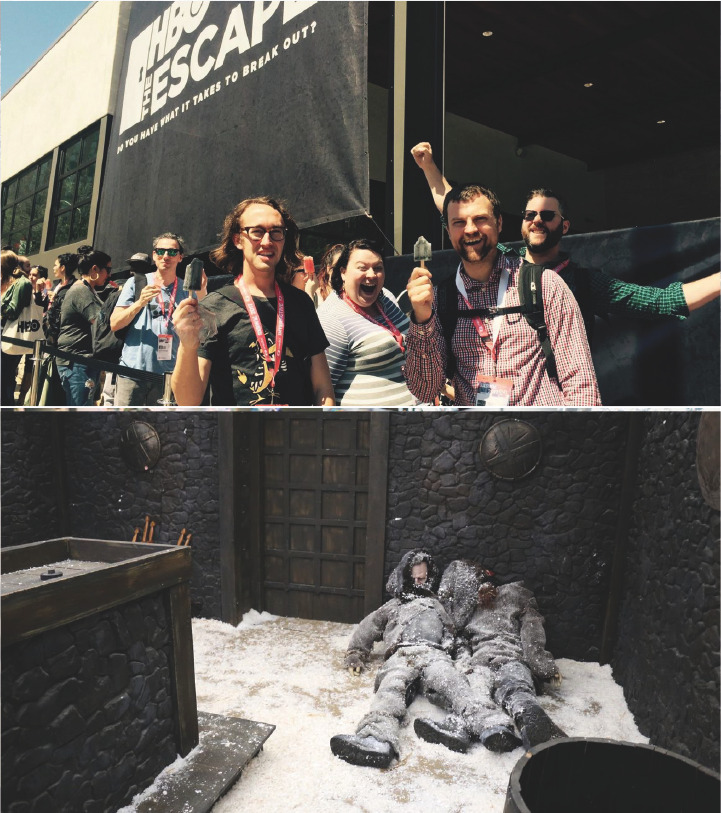 제가 정말 좋아하는 HBO 방송국의 사례입니다. 방 탈출 게임에 대해서 잘 알고 계시죠? 근 몇 년 간 많은 이들을 다시 보드 게임과 추리 게임의 열기로 이끈 하나의 Fad(패드)였지요. 방 탈출 게임의 기본 룰은 특정한 방 안에 갇힌 사람들이 그 방 안에 숨겨진 문제를 풀거나 단서를 찾아내 추리를 하면서 일정 시간 안에 그 방을 탈출하는 것이에요. 이 게임은 전 세계적으로 인기를 끌었고, 한국에도 수많은 방 탈출 게임 방이 생겼습니다. HBO는 미국과 세계 전역으로 퍼진 이 게임 문화에 주목해 올해 초 열린 SXSW에서 메가 방 탈출 게임 경험 디자인을 성공적으로 기획했습니다.