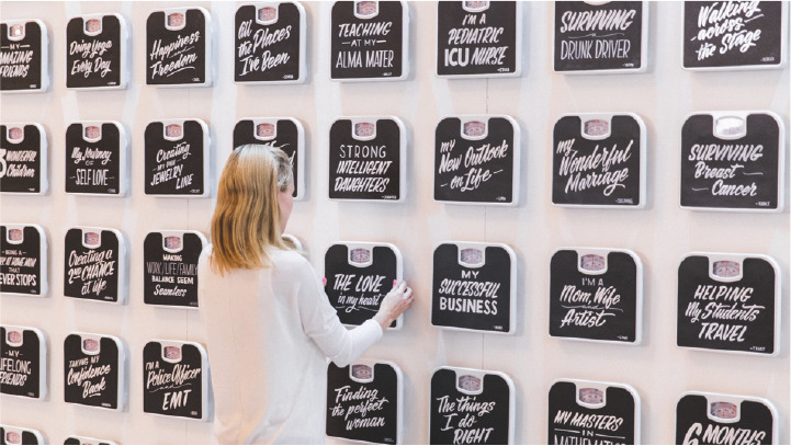 참여한 사람들은 '내 안의 사랑', '유방암을 이겨낸 힘' 등 자신이 선택한 가치로 스스로를 측정하겠다는 선언에 동참한 것이죠. 그리고 이 이벤트에서는 Lean Cuisine의 제품을 실제로 접하게 하는 터치 포인트에 대한 고려는 전혀 없었습니다. 실제로 Lean Cuisine에서 만드는 제품은 건강한 라이프 스타일을 추구하는 사람들을 위한 것이긴 하지만, 제품을 홍보하는 것보다는 브랜드가 전하고 싶은 메시지에 충실한 경험 디자인이었지요. '당신의 성취, 당신이 추구하는 가치가 저울 위 당신의 몸무게보다 더 중요합니다.'라는 메시지를 전달한 이 이벤트는 사람들로 하여금 Lean Cuisine 제품에 담긴 철학이 무엇인지를 더 확실하게 인지하게끔 해준 좋은 사례가 되었습니다.