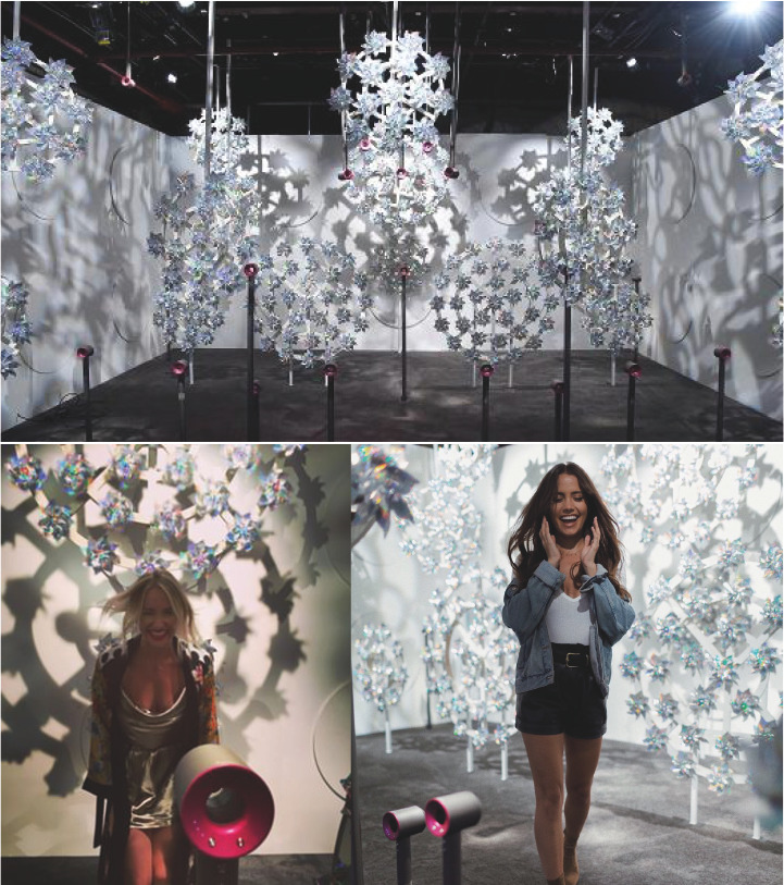 다이슨의 주력 신제품인 헤어드라이어의 기술을 체험하고, 인스타그램용 프로필 사진을 찍을 수 있는 Sonic Spin room (소닉 스핀 룸)입니다. 일반적인 방식으로 헤어드라이기 제품을 체험하기보다는 강력한 다이슨의 바람을 이용해 뱅글뱅글 돌아가는 바람개비와 흩날리는 머릿결을 뽐내며 사진을 찍을 수 있는 서비스를 제공한 공간입니다.