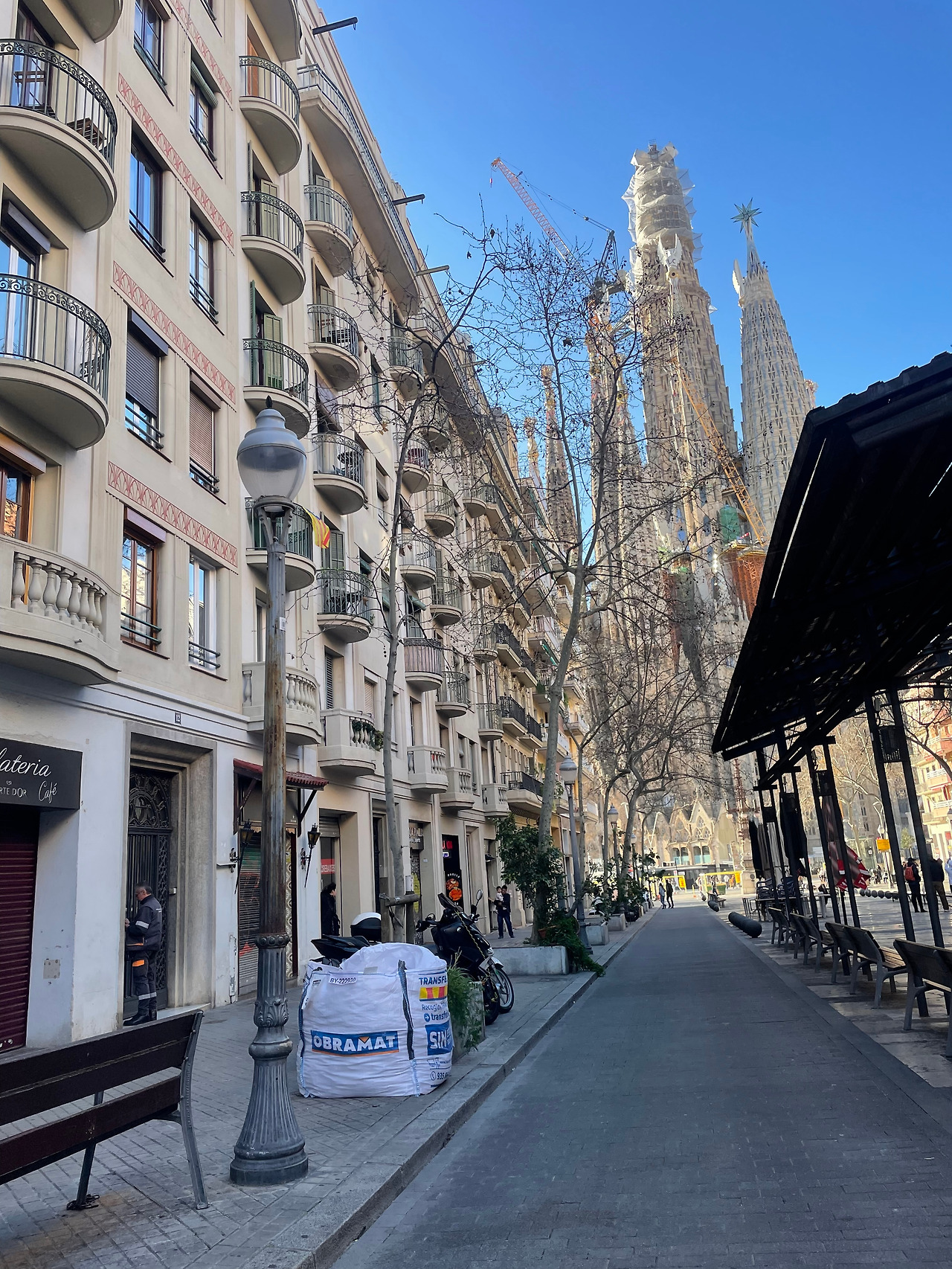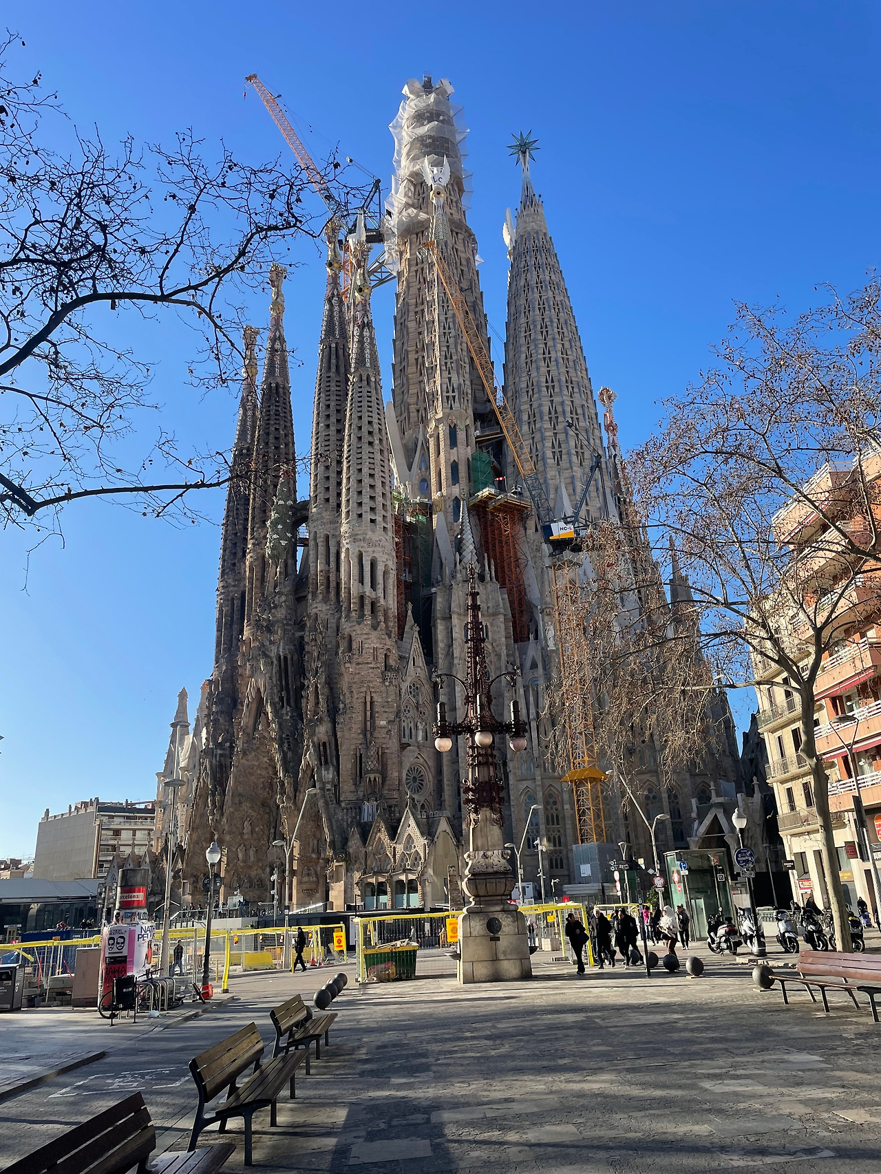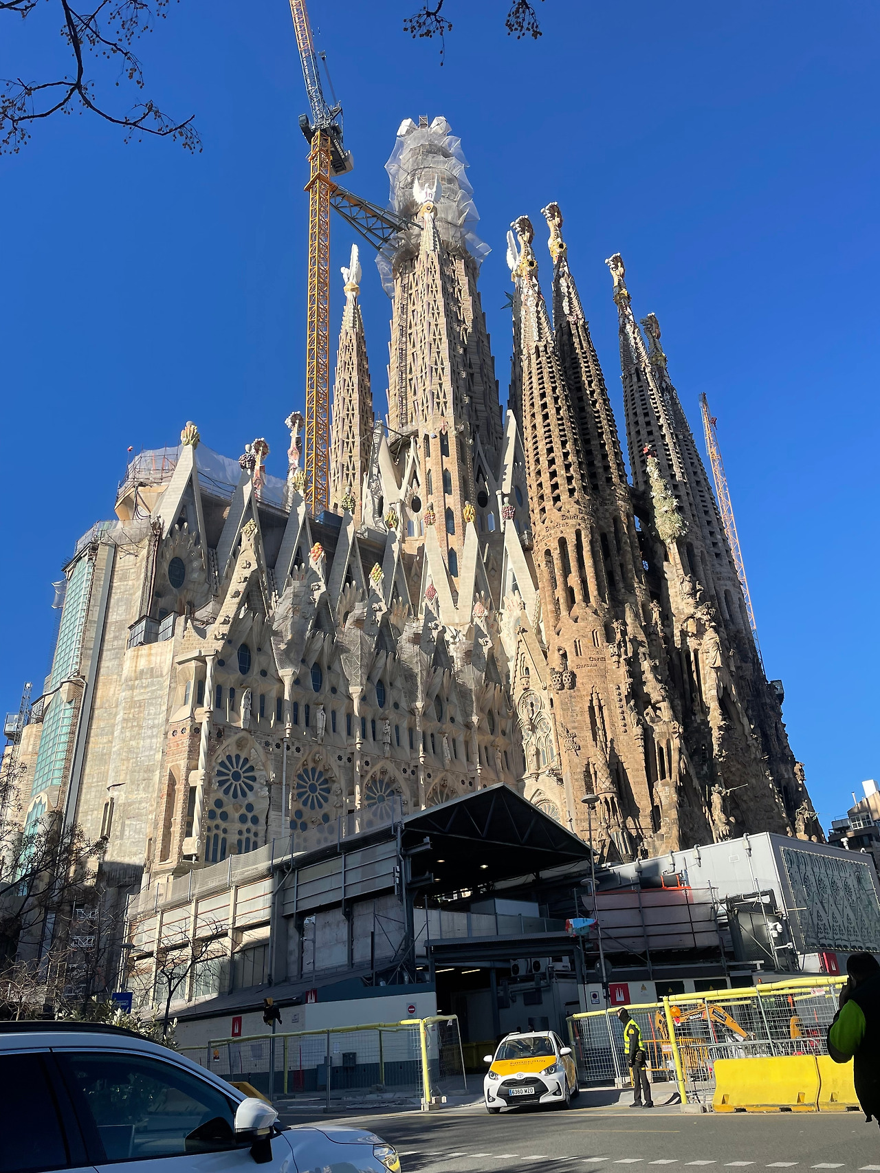 어느 정도 예상은 했지만 역시나 종이 지도는 방향과 건물을 아는 게 아닌 이상 야외에서 쓸 수 없었다. 자칭 아날로그 인간은 고집을 꺾고 구글맵을 켰다. 사그라다 파밀리아 성당까지는 묵고 있는 숙소에서 10분 정도 거리. 골목 몇 개를 지나고 한국보다 조금 작은 신호등, 양 옆의 굵은 흰 줄로만 표시된 횡단보도를 지나 두리번거렸다. 한 번만 더 돌면 되는데. 어디있지. 그러다 고개를 왼쪽으로 돌렸을 때 헙- 하고 숨을 들이마셨다. 호들갑 떨며 아들을 불렀다.