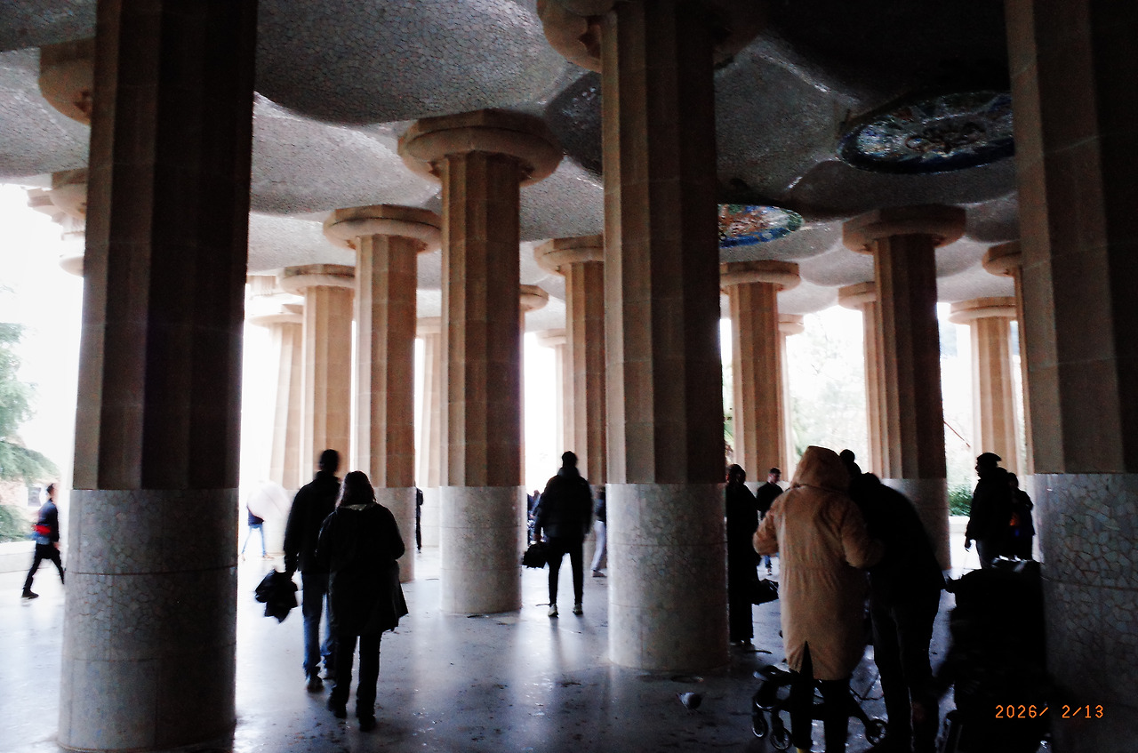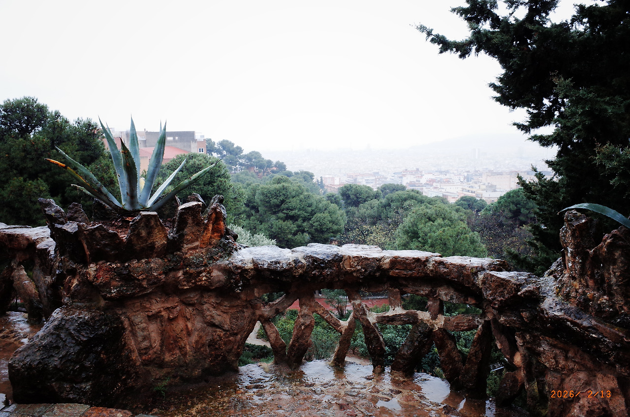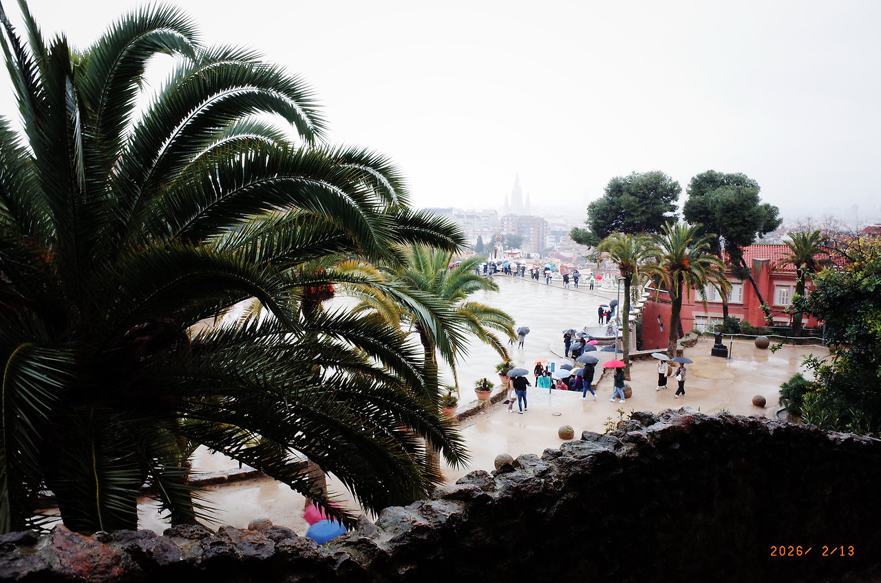 돌로 만든 기둥과 터널을 지나 높은 곳으로 올라가자 바르셀로나 시내가 훤히 보였다. 와 - 하고 풍경을 살피며 걸었다. 저 멀리 우뚝 솟은 사그라다 파밀리아 성당도 보였다. 우산을 들고 틈틈이 사진을 찍는데 한국 학생들 같은 친구 한 명이 다가와 물었다.
