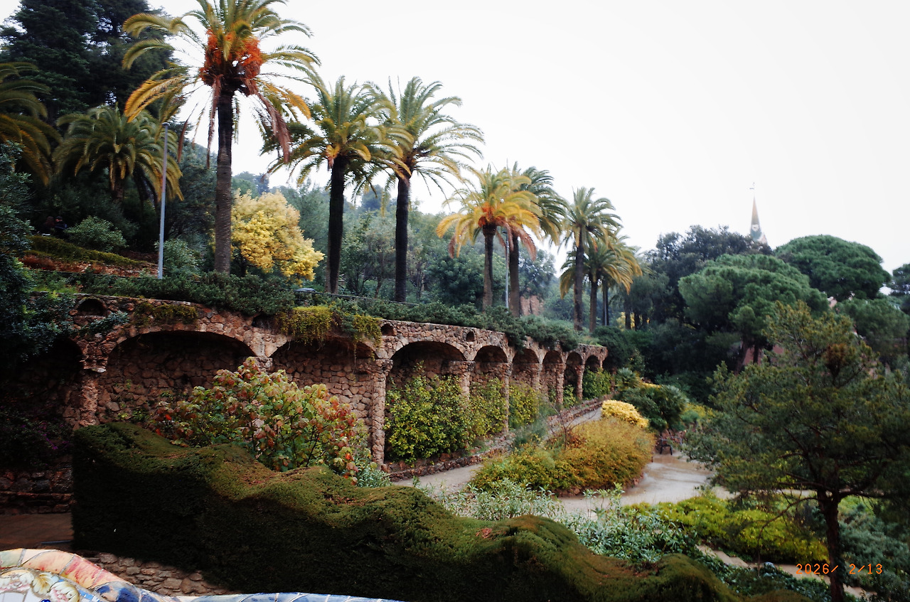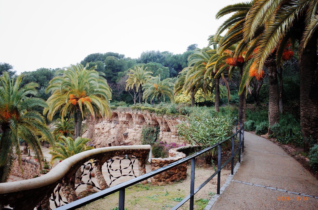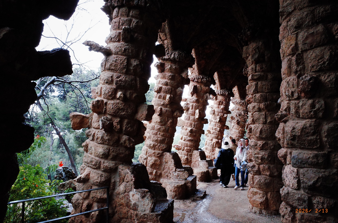 돌로 만든 기둥과 터널을 지나 높은 곳으로 올라가자 바르셀로나 시내가 훤히 보였다. 와 - 하고 풍경을 살피며 걸었다. 저 멀리 우뚝 솟은 사그라다 파밀리아 성당도 보였다. 우산을 들고 틈틈이 사진을 찍는데 한국 학생들 같은 친구 한 명이 다가와 물었다.