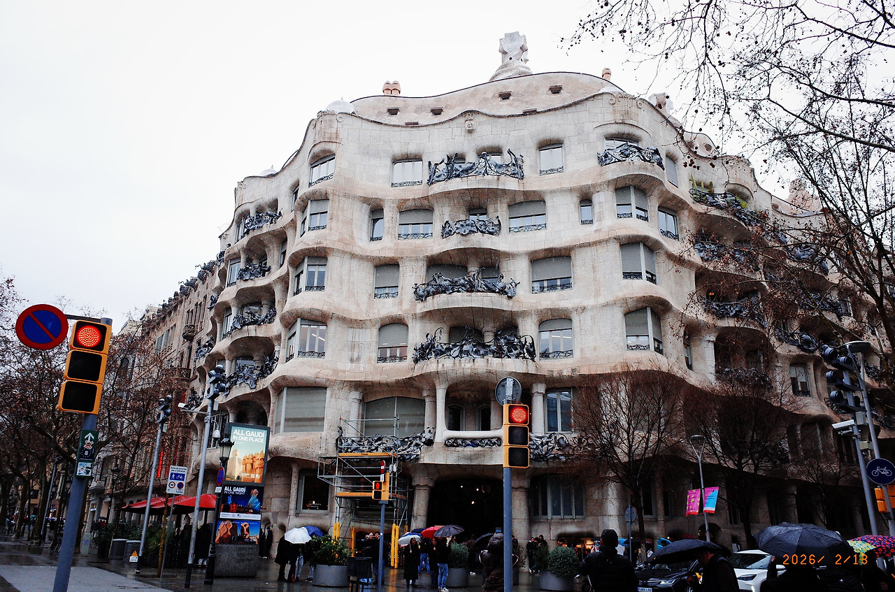 S가 건네준 사진 중 하나의 배경이 까사 밀라였다. 보내준 사진을 들여다보며 어디서 찍었을지 요리조리 살펴보다 길을 건넜다. 초록 우비를 입은 아들이 선 배경과 S의 사진 속 배경이 겹쳐지던 순간. 십 년 전 친구의 앳된 얼굴이 겹쳐진다. 그녀는 함께 오지 않았지만, 멀리서 나를 이끌어 준다. 한국에서나 스페인에서나.
