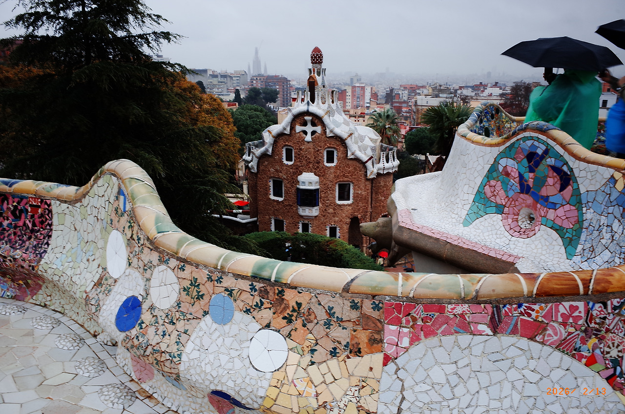 비가 와서 질퍽거리긴 했지만 다시금 가우디의 천재성을 엿볼 수 있던 공원이었다. 그는 정말 어떤 사람이었을까. 돌과 깨어진 조각들, 그들이 만들어낸 곡선의 공간. 자연과 어우러지는 건축물, 알록달록한 세계 속에 붙잡고 있던 의심과 분노는 저만치 두고 온 뒤였다.