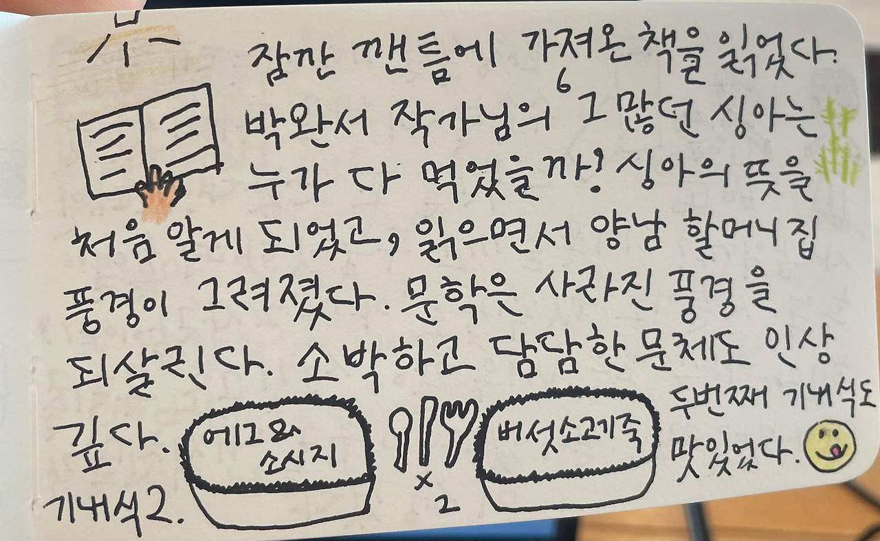 비몽사몽으로 일어난 옆 친구가 탁자 여는 걸 헤매길래 작은 오지랖을 부리고 식사를 마쳤다. 정리하고 얼마나 지났을까.