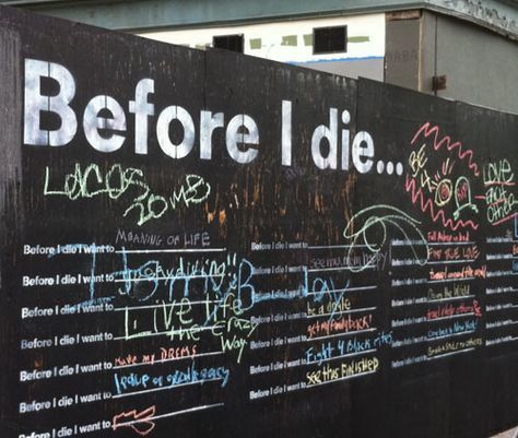 그리고 브루클린점이 오픈할 때 공사 가림막 전체 크기로 큰 흑판을 만들 고, 위에 딱 하나의 문장을 써놓은 후 시민들이 자유롭게 글을 남길 수 있도록 분필을 마련해두었다. 문장은 “Before I die… (내가 죽기 전에) ”였다. 시민들은 거리를 걷다 죽기 전에 하고 싶은 것들, 사랑하는 사람에게 남기고 싶은 말들을 자연스럽게 쓰고 남겼다. 다음날 다시 지우고, 또 채워지고 사람들은 죽기 전에 하고 싶은 일들, 누군가에게 꼭 전하고 싶은 사랑의 말들, 감사의 말, 후회되는 지난 일들을 누가 시키지도 않았고 아무도 없는데도 혼자 써 내려갔다.