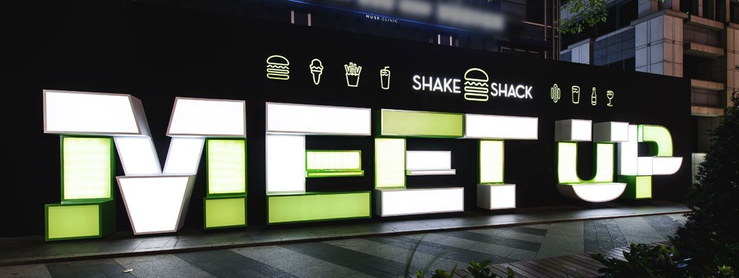 지금의 30~40대에게는 강남역 뉴욕제과나 타워레코드 등이 만남의 장소였지만, 어느샌가부터 삭막해지고 복잡해져 있었다. 서울 교통의 허브이고 대중교통편이 뛰어난 이점으로 여전히 20~30대 젊은 고객들이 많이 찾고 차량 트래픽이 많은 곳이다. 하지만 이제 강남역 하면 약속하고 만나는 문화공간의 느낌은 사라지고 비싼 부동산 가격과 딱딱한 상업시설, 성형외과, 강남스타일과 같은 이미지가 먼저 생각나는 곳이 됐다. 이런 공간을 다시 따뜻한 만남의 장소로 재현하고 싶어 잡은 주제는 “밋업, 파워업 (Meet up, Power up) ”이었다. 사실 여러 팀 회의에서 나온 수많은 카피 들 중에서, 하나로 좁혀지지 못하고 있었다. 마침 서울을 방문한 마케팅 디렉터와 우리 팀이 함께 서울 여러 곳을 답사를 다니는 중에 교통이 막히니, 차 안에서 자연스럽게 브레인스토밍 하며 나온 말이 밋업, 파워업이었다. 뉴욕에서 온 마케팅 디렉터와 우리 한국인의 입에도, 촥 달라붙는 좋은 의미의 카피가 나왔다. 쉐이크쉑이 한국 첫 고객들에게 건네고 싶은 따뜻한 인사말 같은 카피이기도 했다.