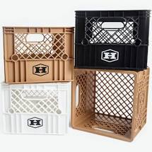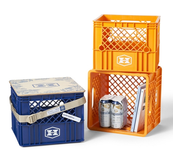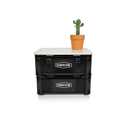 '하이브로우'의 시그니처 상품이자 스테디셀러 상품은 밀크박스이다. 이 상품은 이천희 씨가 미국 촬영 출장 중 우연히 노숙자가 갖고 있던 밀크 박스를 유심히 눈여겨보고 감각적인 디자인을 더해 상품화한 것이다. 최소한의 짐으로 최소한의 의식주를 길에서 해결해야 하는 상황에서 우유 박스는 최소한의 수납장과 의자가 되기도 하고 뒤집으면 밥상이 될 수 있다. 이동이 쉬운 건 두말할 필요도 없다. 물론 두 경우는 다르겠지만 캠핑도 큰 맥락에서 수납, 이동, 다양한 활용도, 간편성이 중요하다. '하이브로우'는 노숙자 우유 박스에서 착안하여 우리 주변에 흔하게 만날 수 있었던 플라스틱 박스에 새로운 색상을 입히고, 로고를 올리고, 멋있는 목공 상판을 얹어 다양하게 활용할 수 있도록 하였다. 하나의 아이템으로 캠핑용 박스, 의자, 캐리어, 수납 가구로 활용할 수 있고 레고처럼 쌓는 방식에 따라 여러 가지 형태와 크기의 가구와 소품으로도 활용할 수 있다.