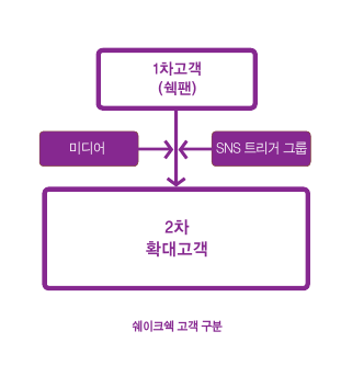 쉐이크쉑 한국의 경우 초반에 우리가 잡았던 고객 구분은 다음과 같았다. 물론 브랜드 론칭 초반과 이후에는 당연히 고객층 구분이 달라질 것을 염두에 두었다. 1차 도달 고객은 쉑팬 (Shack Fan)이었다. 쉑팬은 쉐이크쉑의 팬층을 일컫는 자체 용어다. 쉑팬은 해외에서 이미 쉐이크쉑을 경험하고 긍정적인 브랜드 이미지를 갖고 있는 사람들이었다. 그리고 아직 직접 먹어보진 못했지만 브랜드 철학이나 가치에 대해서 알고 있으며 국내 오픈에 대해 높은 기대감을 갖고 있는 고객들이었다.