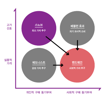 재화가 흔하지 않고 가격이 합리적이지 않을 때 오히려 구매 수요가 올라가는 경우가 간혹 있는데 이런 희소성 가치를 추구하는 현상을 일컬어 ‘스노브 효과’라고 한다. 마케팅 용어 중 하나인 스노브는 ‘속물