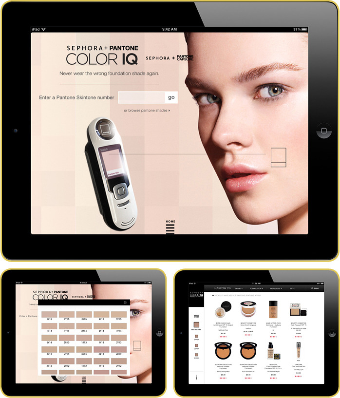 세포라의 디지털 혁신을 앞당긴 가장 큰 일등공신은 핵심 고객의 편의성에 맞춘 개인 맞춤형 정보 제공이었다. 예를 들면 매장에 설치된 Color IQ라는 단말기를 통해 즉석에서 사진을 찍고 개개인의 피부톤에 맞는 색상을 찾아준다. '팬톤'사와 협업하여 개발한 컬러 매칭 기능은 고객이 피부톤에 맞는 색상 음영을 찾는데 효과적이다. 같은 사람이라고 하더라도 시즌별 피부 상태나 태닝 상태에 따라 피부톤이 미세하게 달라질 수 있기 때문이다.
