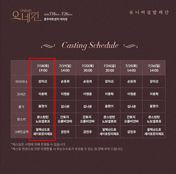 UBC 오네긴 (2020) 캐스팅. 나는 첫공연을 보았다.