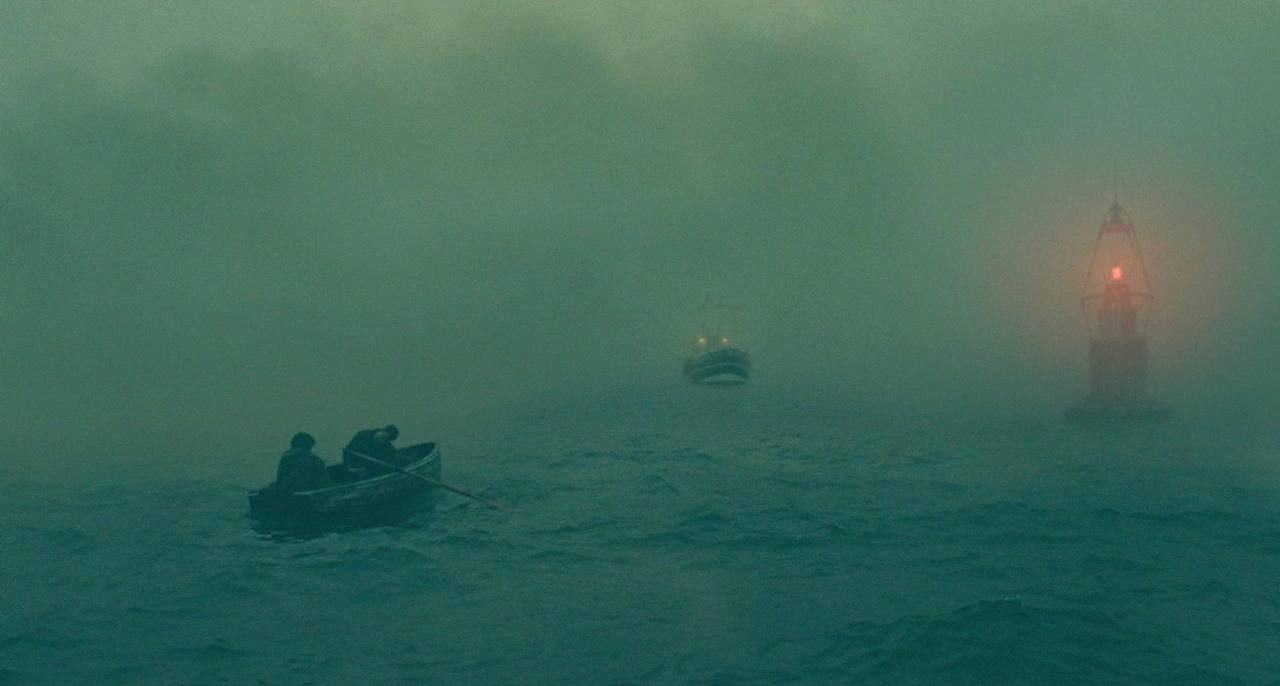 키와 아기, 테오가 탄 배가 안개로 가득한 바다로 나온 장면. 영화 <칠드런 오브 맨> 스틸컷