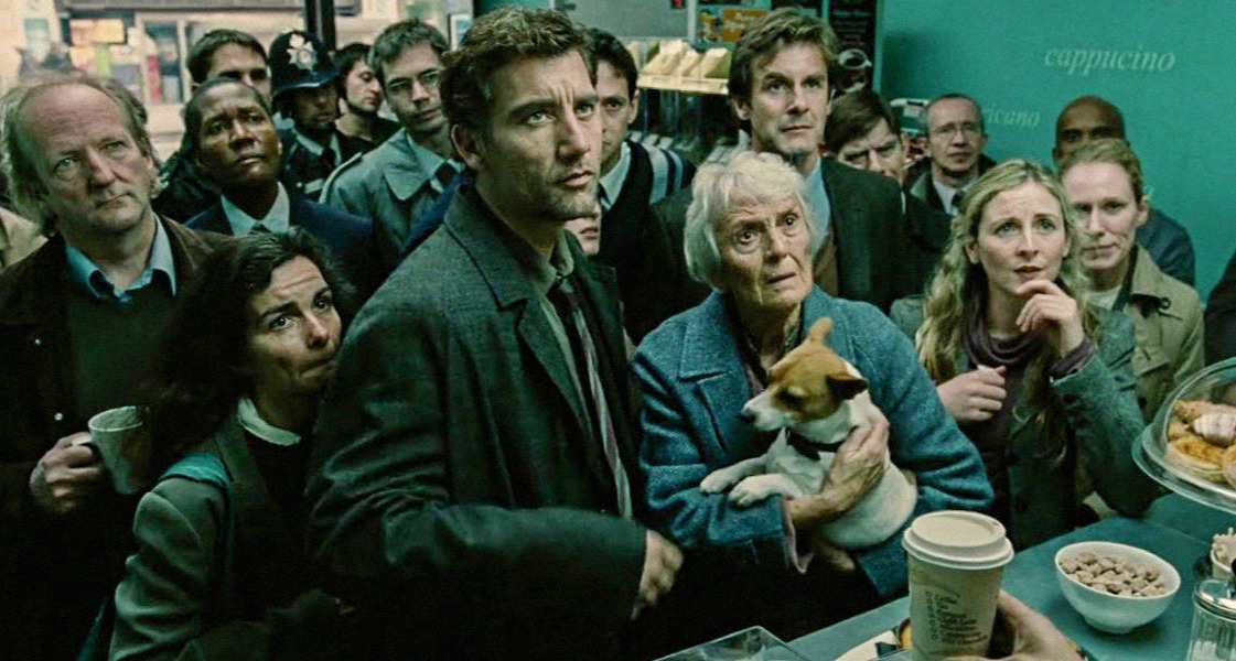 희망의 빛이 소멸해버린 세상에서 사람은 크게 두 부류로 나뉘지 않을까. 불안에 떨며 가짜 희망에 매달리는 쪽과 더 이상 희망은 없다며 냉소적이 돼버리는 쪽. 테오(클라이브 오웬)는 후자다. 그는 한때 반전운동을 벌이던 활동가였지만 지금은 염세주의에 가득 찬 공무원이다. 테오는 디에고 사망 소식을 전하는 TV 뉴스에서 눈을 떼지 못하는 사람들 사이를 무표정하게 오가고, ‘국민아들’의 죽음을 슬퍼하는 사무실 분위기를 참지 못해 자리를 박차고 일어난다. 조퇴를 신청하면서는 정작 “디에고의 죽음으로 충격이 너무 크다”고 핑계를 대고, 앞서 출근길에 몇 걸음 차이로 폭탄 테러를 모면한 사실에 대해서는 한 마디 언급도 하지 않는다. 이런 모습은 세상과 삶에 대한 냉소를 엿보게 한다. 생일에 뭘 했느냐는 오랜 친구 재스퍼(마이클 케인)의 질문에 테오는 “평소처럼 엿 같은 기분으로 일어나 엿 같은 기분으로 출근했다”며 “정말이지 사는 게 무의미하다”고 말한다.