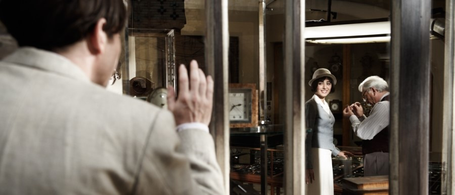 시계방에서 첫사랑 이란(가운데)에게 손을 들어 인사하는 나세르 알리. 영화 <어느 예술가의 마지막 일주일> 스틸컷