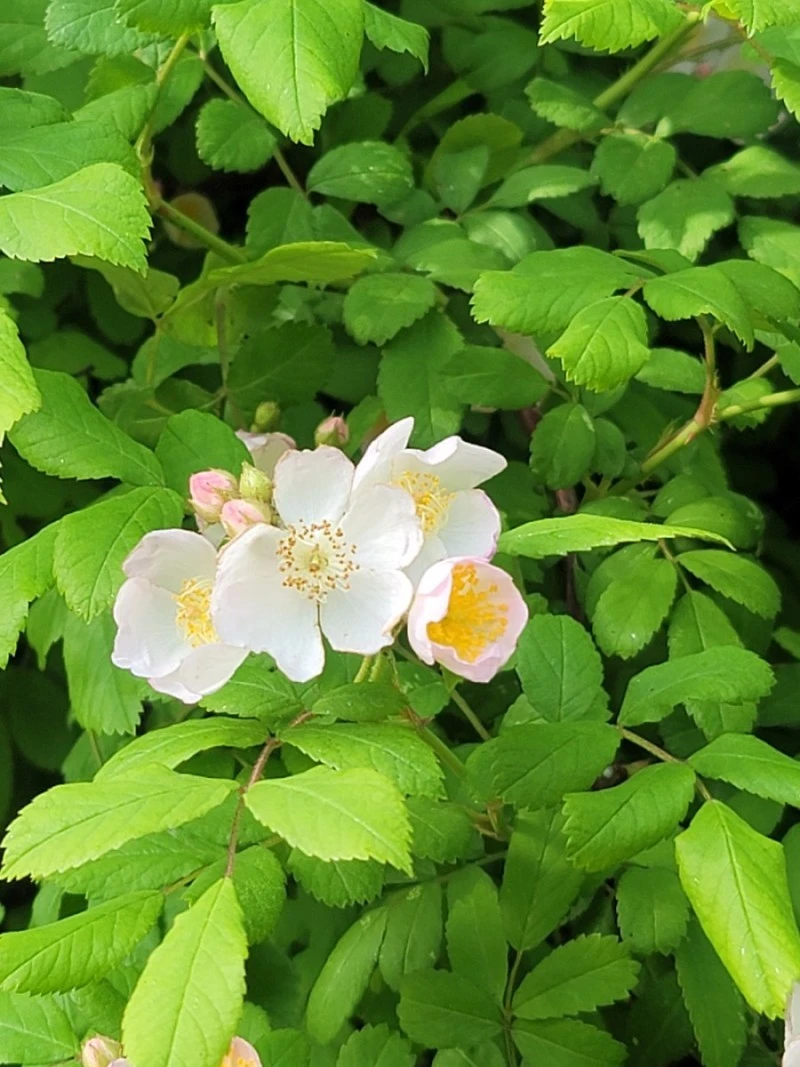 아침 운동을 나갔다가 찔레나무 새순을 보다가 문득 '찔레꽃은 하얀색인데 노래에선 왜 찔레꽃이 붉게 핀다고 하지?'라는 생각이 들었습니다. 인터넷 검색을 해 보니 붉은빛이 도는 찔레꽃도 있었습니다. 아직 찔레꽃이 피는 시기는 아닙니다. 꽃을 보려면 5~6월까지 기다려야 합니다. 그때가 되면 근처만 가도 찔레꽃 진한 향기에 취할 수 있습니다.