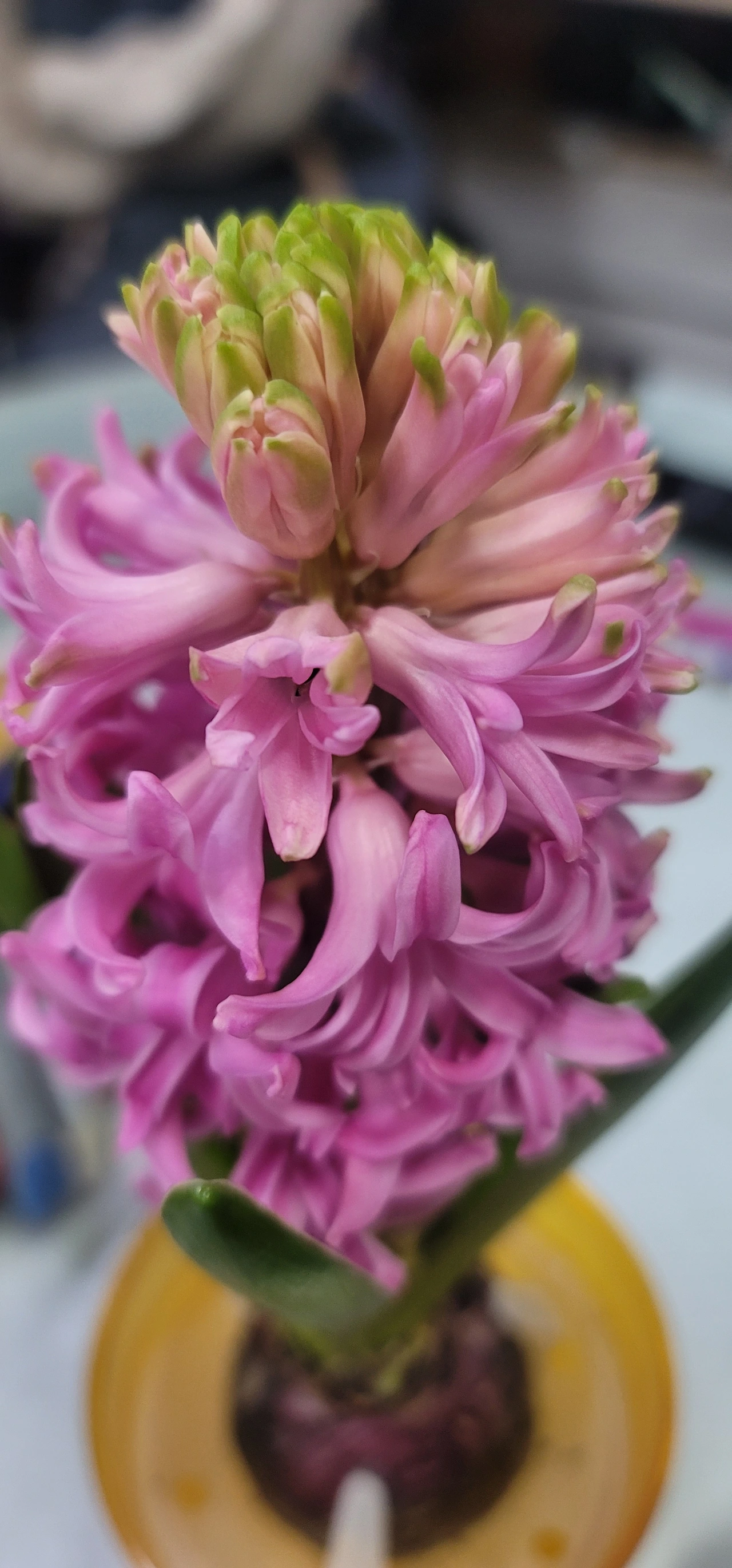 한창 피고 있는 수경 히아신스 하나를 사무실에 들였습니다. 꽃이 3/4 정도 피어있는데 이 정도면 가정집에서 일주일에서 열흘정도 꽃과 향기를 즐길 수 있습니다. 하지만 가정집보다 기온이 5도 이상 낮은 교습소는 더 오랫동안 꽃을 볼 수 있습니다.