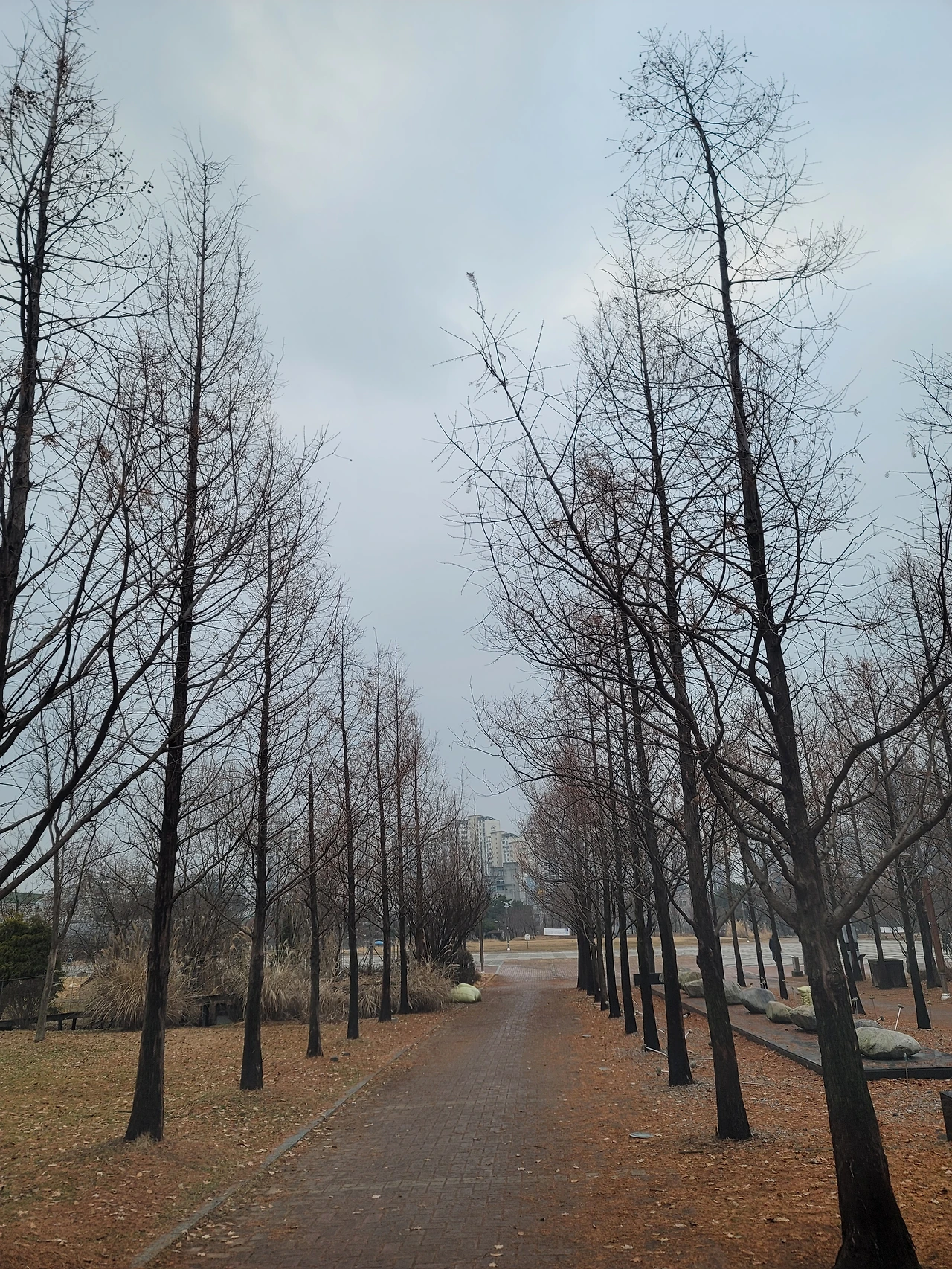 공원 메타세콰이아 나무들은 마지막 잎까지 떨구고 조용히 겨울을 보냅니다. 잎이 모두 떨어진 겨울나무가 얼마나 매력적인지 알고 싶다면 하늘이 파란 날 하늘을 배경으로 나무 사진을 찍어 보세요. 우듬지 끝까지 선명하게 보일 겁니다.