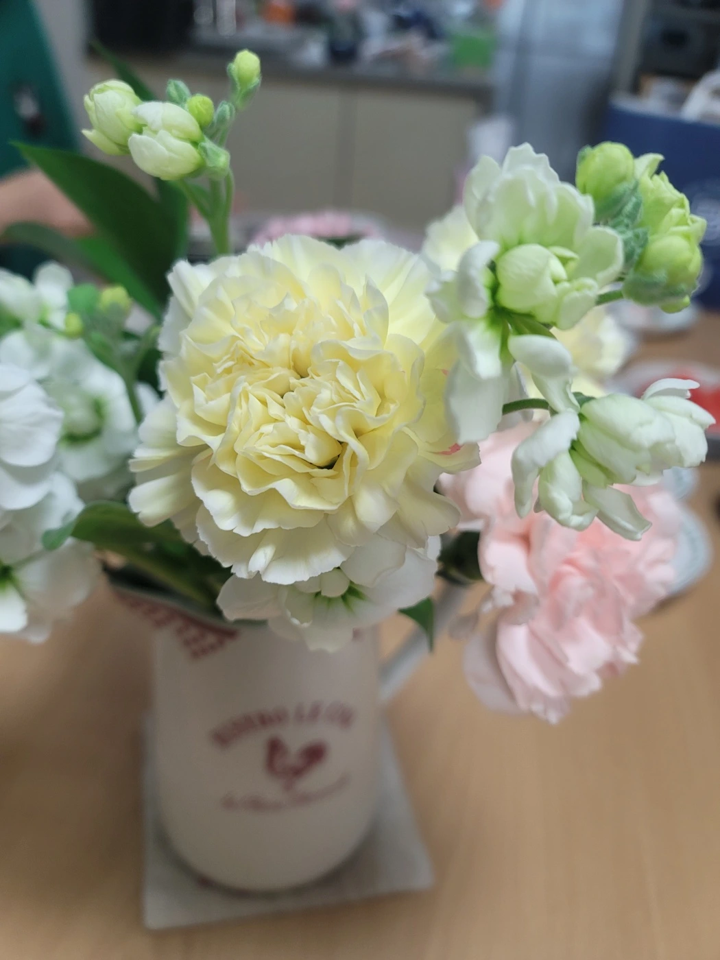 칼란디바, 극락조, 몬스테라, 고무나무, 아메리칸 블루, 사랑초... 베란다에서 햇살을 기다리는 우리 집 분화들입니다. 솔로미오 스프레이카네이션, 카네이션, 스토크, 스위트피 절화가 꽃병에 꽂혀 있습니다. 지인 선물과 셀프 선물 덕분에 꽃이 가득한 집이 되어서 좋습니다. 이 계절 최고의 절화 프리지어도 집에 들이고 싶은 데 요즘 절화 가격이 천정부지로 올라서 조금 고민 중입니다. 셀프 선물할 거리를 만들어 봐야겠습니다.