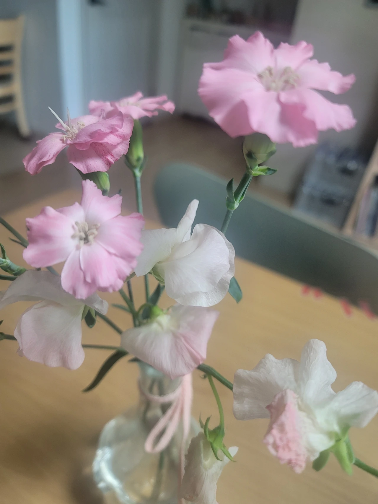 솔로미오 스프레이카네이션과 스위트피.. 꽃집을 하는 지인이 선물로 주었는데 함께 온 튤립은 이미..... 절화를 오래 보고 싶다면 카네이션 종류도 추천합니다. 조금 서늘한 곳에 두면 더 오래 볼 수 있습니다.