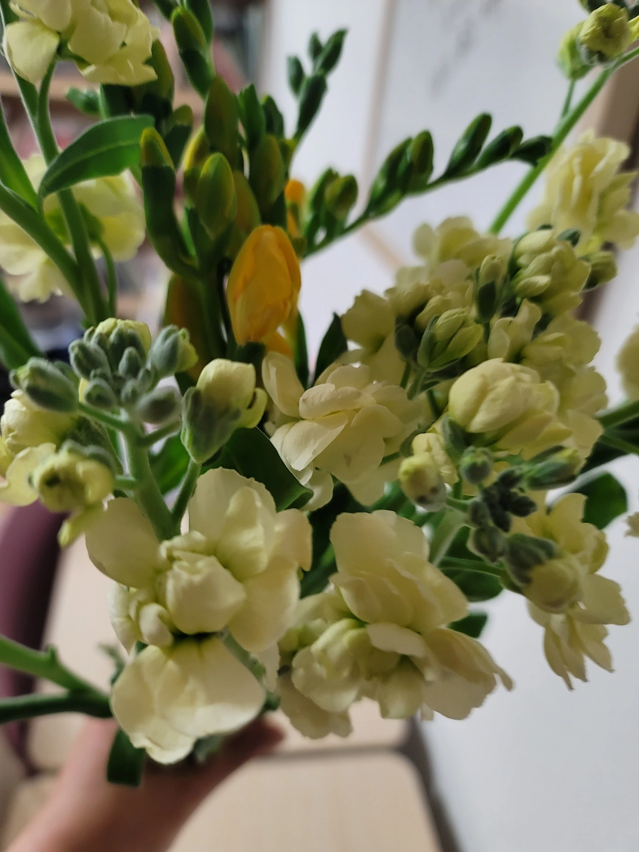 집에 와서 프리지어와 스토크를 소분했다. 모두 나한테 선물하기는 양이 많다. 꽃을 사면 선물하던 사람들이 생각난다. 같은 동 14층 언니, 이제는 이웃이 아닌 상가 세탁소 사장님, 한 달에 한 번 새치 염색을 해 주는 상가 미용실 원장 언니.. 그리고 내게 처음으로 프리지어를 사 줬던 남자까지...