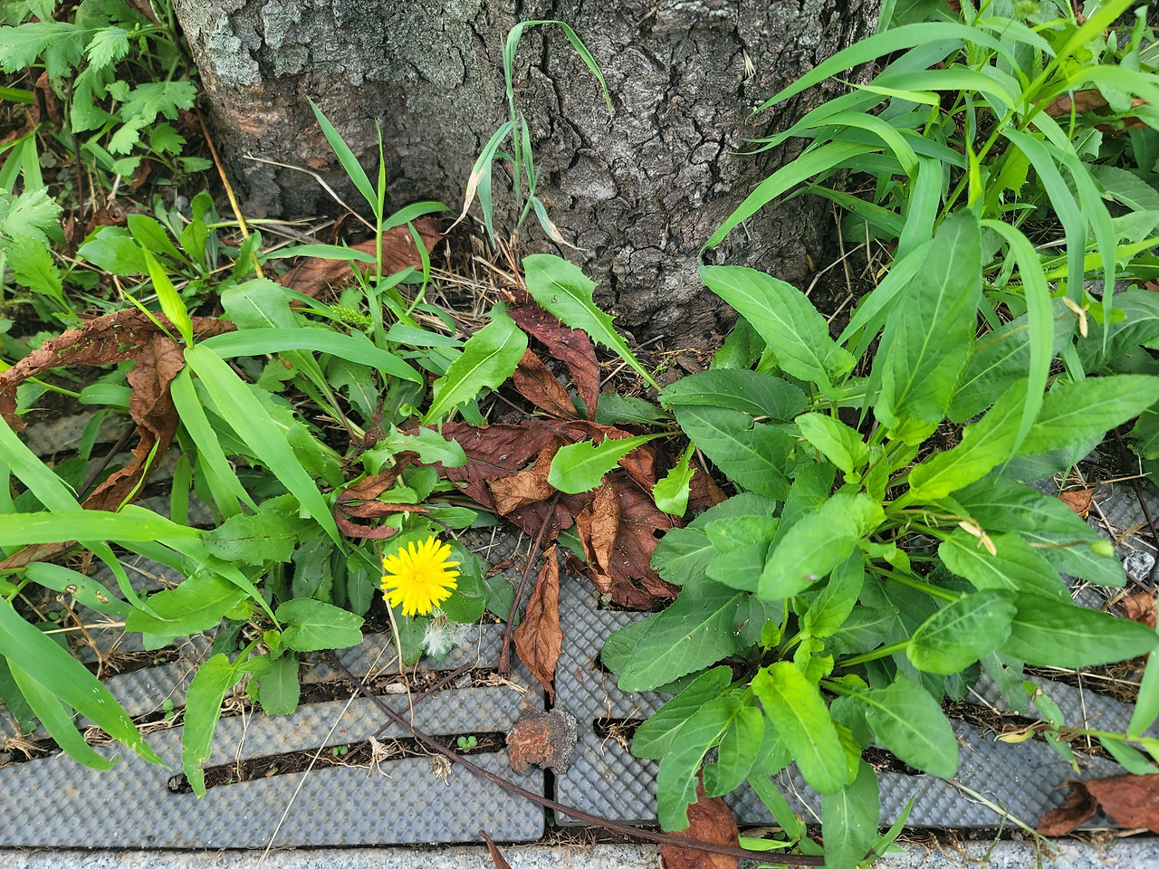 하늘을 쳐다보다 고개를 떨구었더니 가로수 아래 동거 중인 식물들이 눈에 들어온다. 오밀조밀 여러 식물들이 함께 지내고 있다.