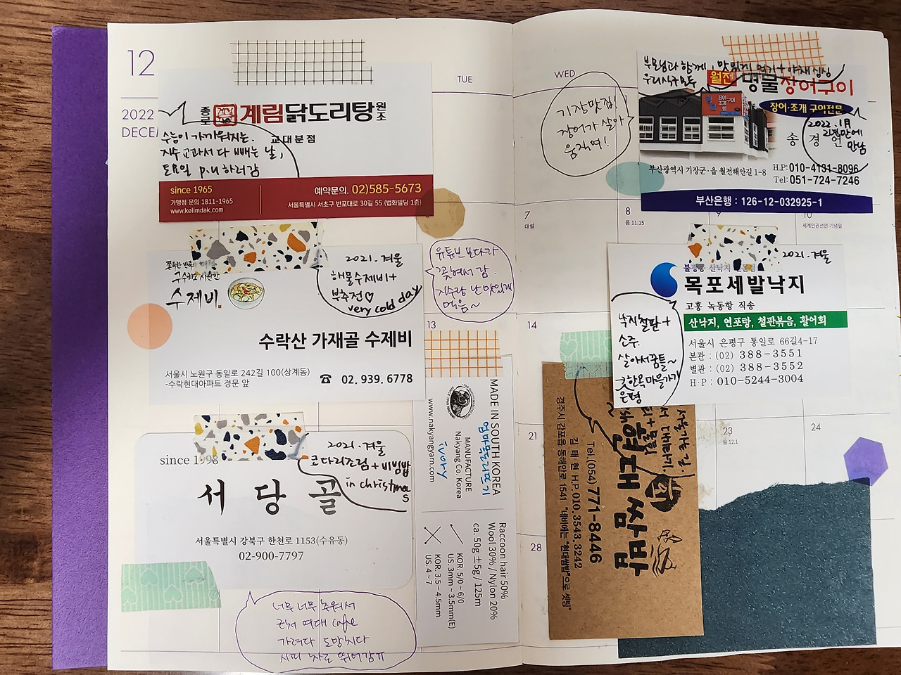 특히 먹었던 음식의 기록도 소중한 기억을 돋웁니다.