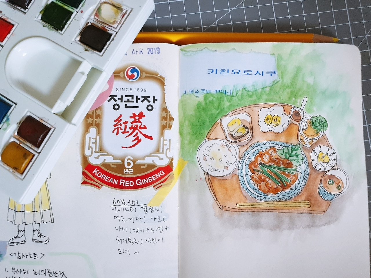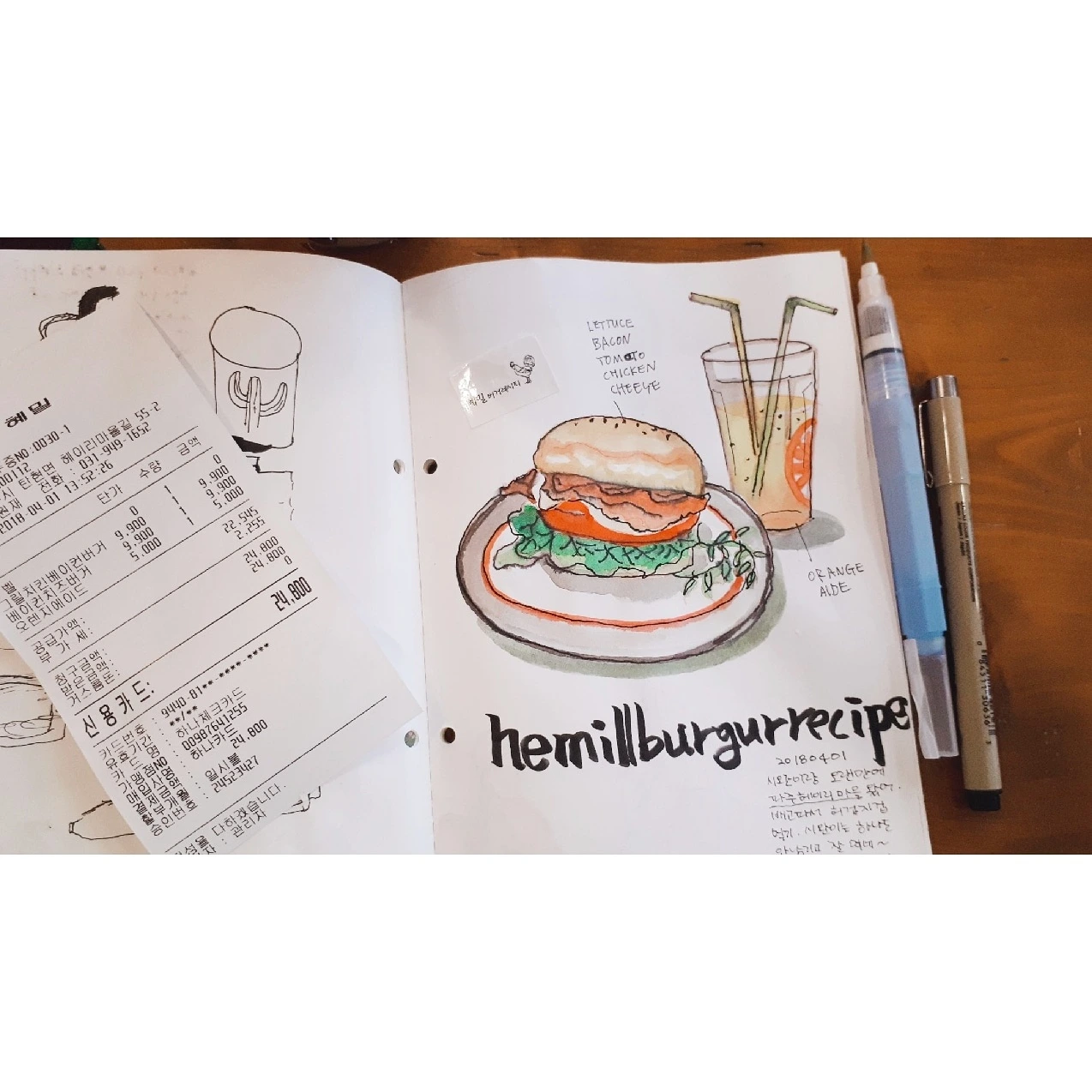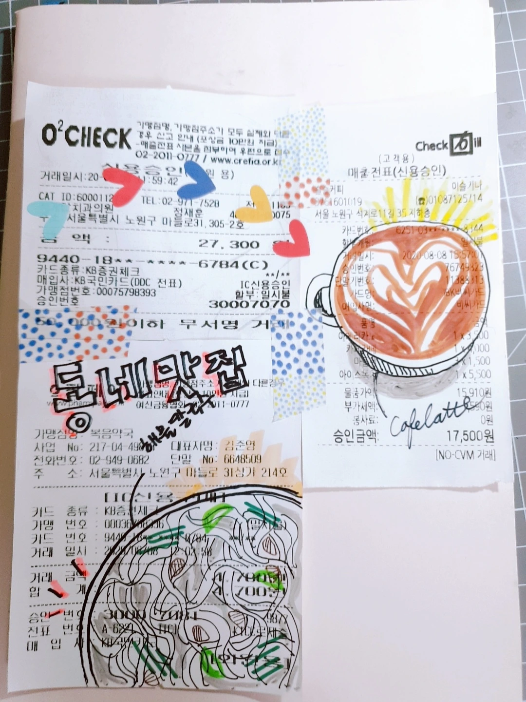 방문했던 곳의 영수증을 붙이고, 그 위에 그림을 그리는 것도 기억하기 좋은 방법입니다.