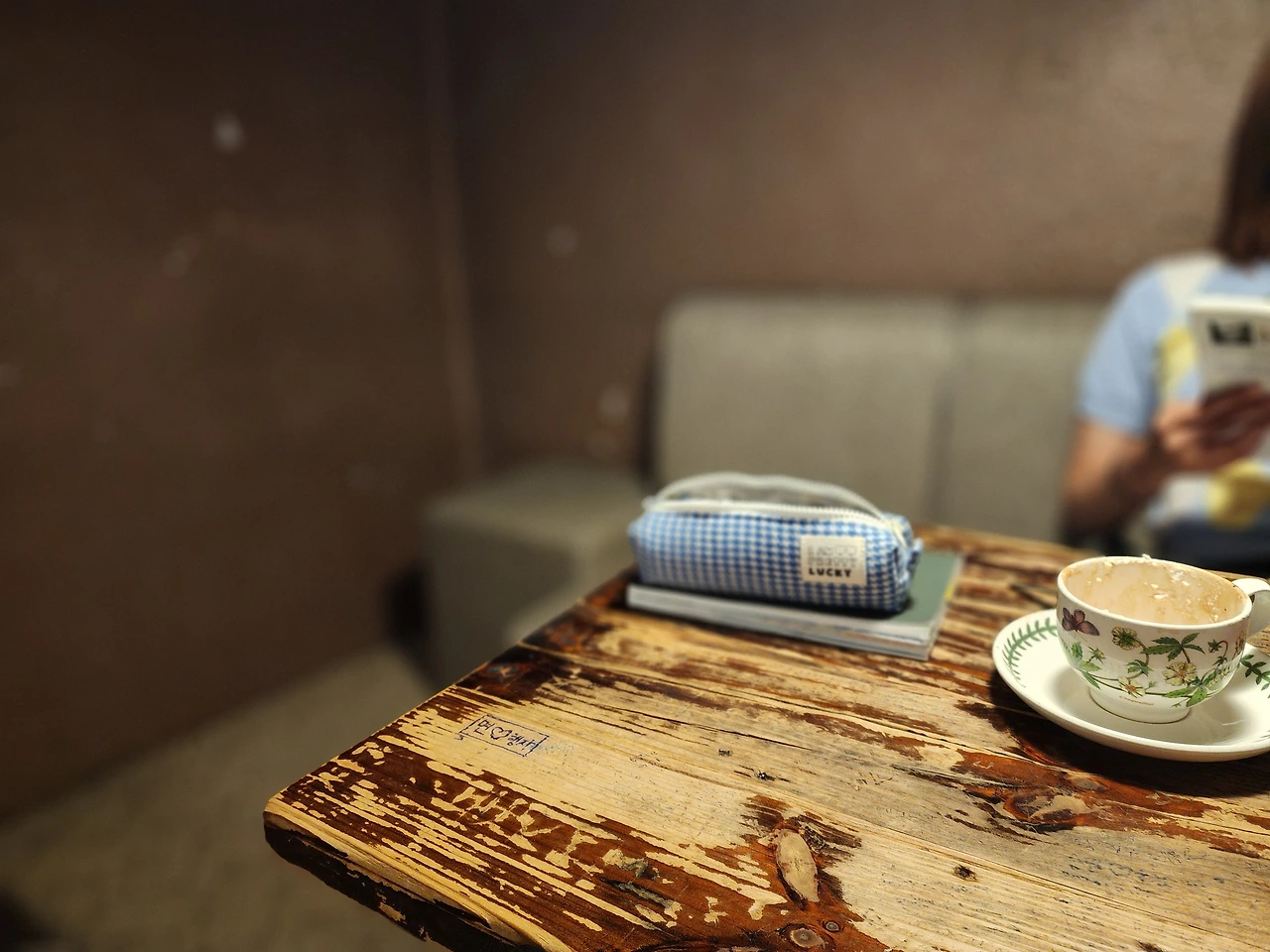 삐걱거리는 나무 소리, 복층으로 올라가는 좁은 계단에 깔린 낡은 카펫, 대학시절로 돌아간 것 같은 룸카페 구조, 오래된 테이블 위의 오래된 낙서들...