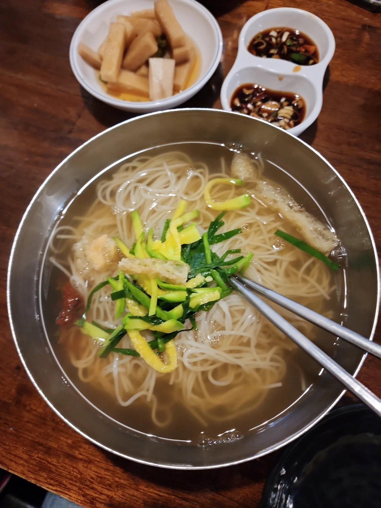 그 위에 고춧가루 양념장을 살짝 얹어 먹으면 비릿한 고소함이 일품인 국수가 되지요.