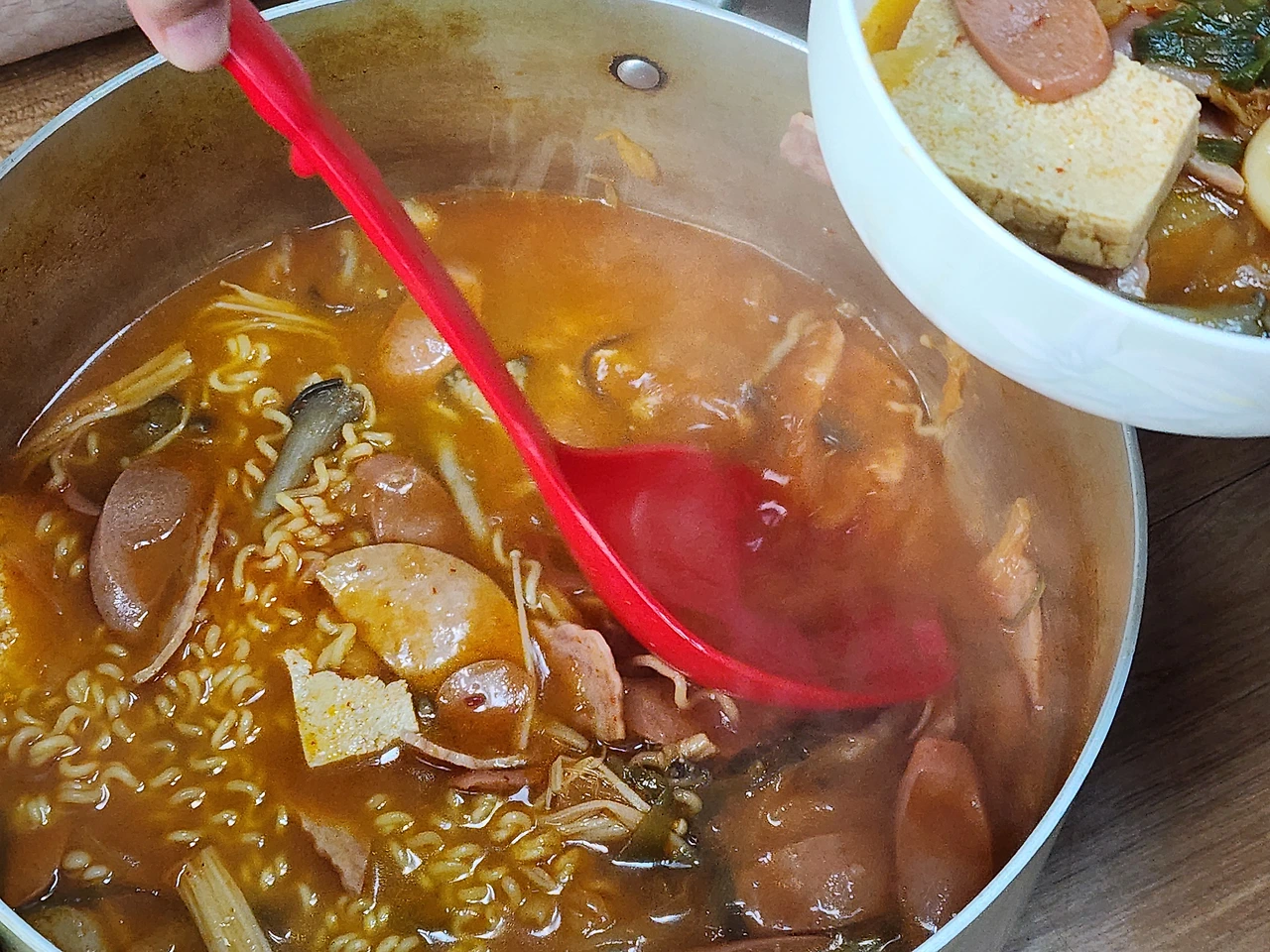 양이 부족하면 두부, 야채, 라면이든 뭐든 넣어도 맛이 변하지 않아 먹고 난 이후에 배고프다는 소리따윈 나오지 않죠.