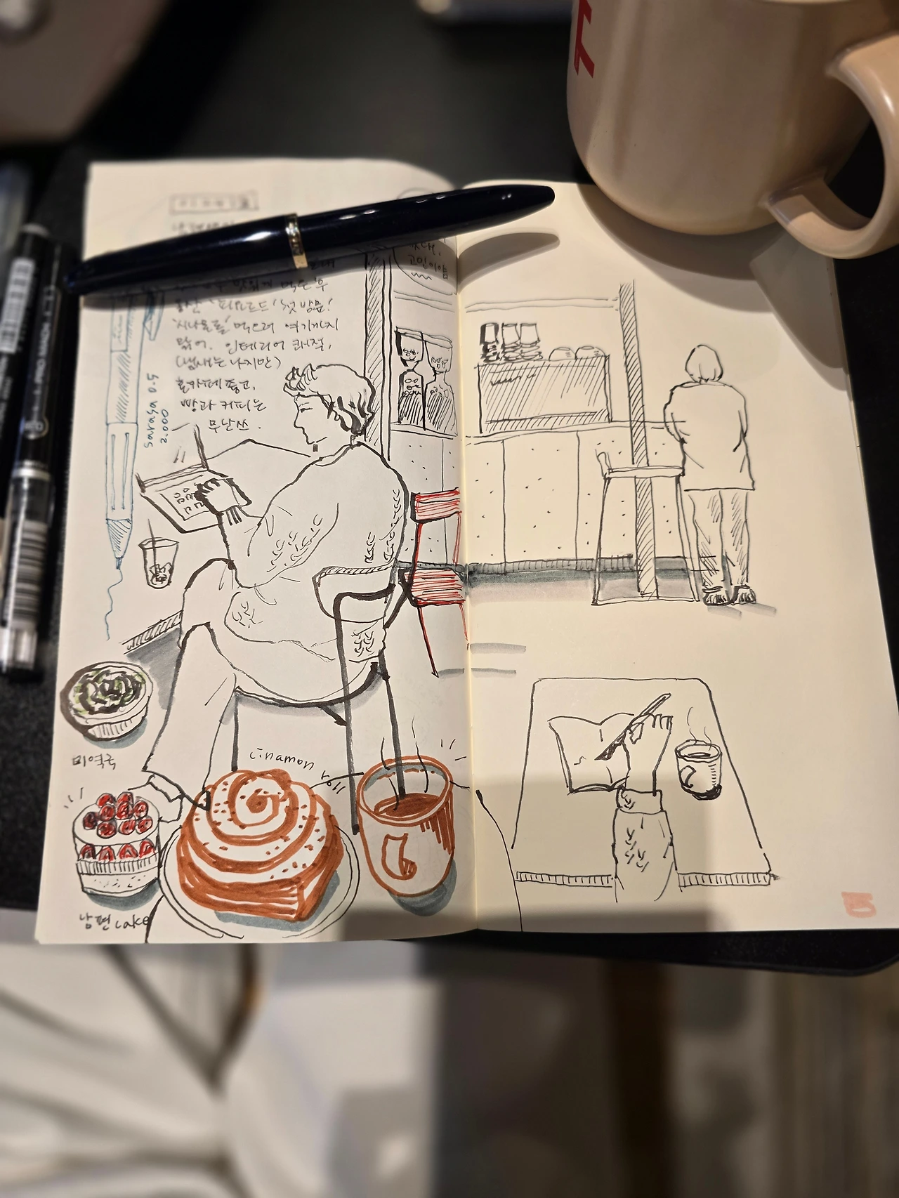 겹겹이 계피와 설탕이 뿌려진 달달한 시나몬롤은 기대보다 평이한 맛이었지만 영화처럼 버터냄새 풍기는 갓 구운 빵을 먹지 않아서 그런 거야, 생각하며 옴뇸뇸 맛있게 먹어치웠다.