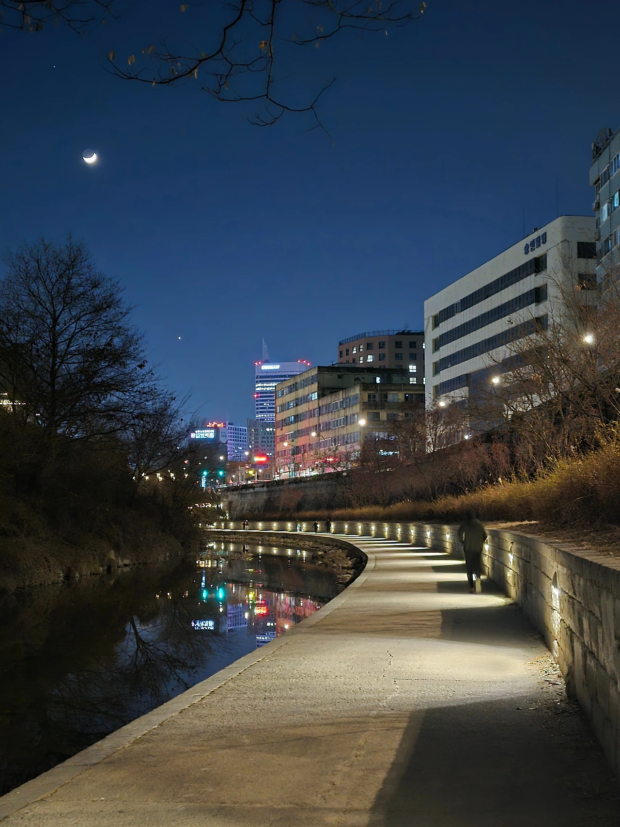 겨울밤, 신나게 걷기 운동을 하던 순간이었다.