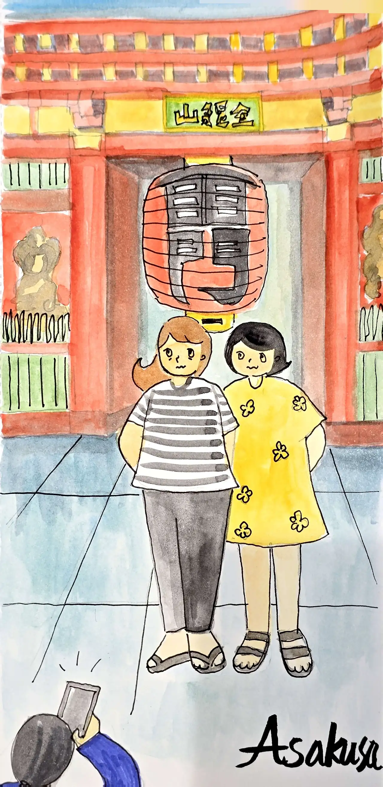 한 일본여성이 다가와 사진을 찍어주겠다는데, 순간 미안하지만 의심이 들었다. 이렇게 더운데 굳이 와서? 스마트폰 들고 튀는 거 아냐? 우리끼리 속삭이면서 거절하는 건 그 와중에 예의가 아닌 것 같아 떨리는 손으로 건네주었다.