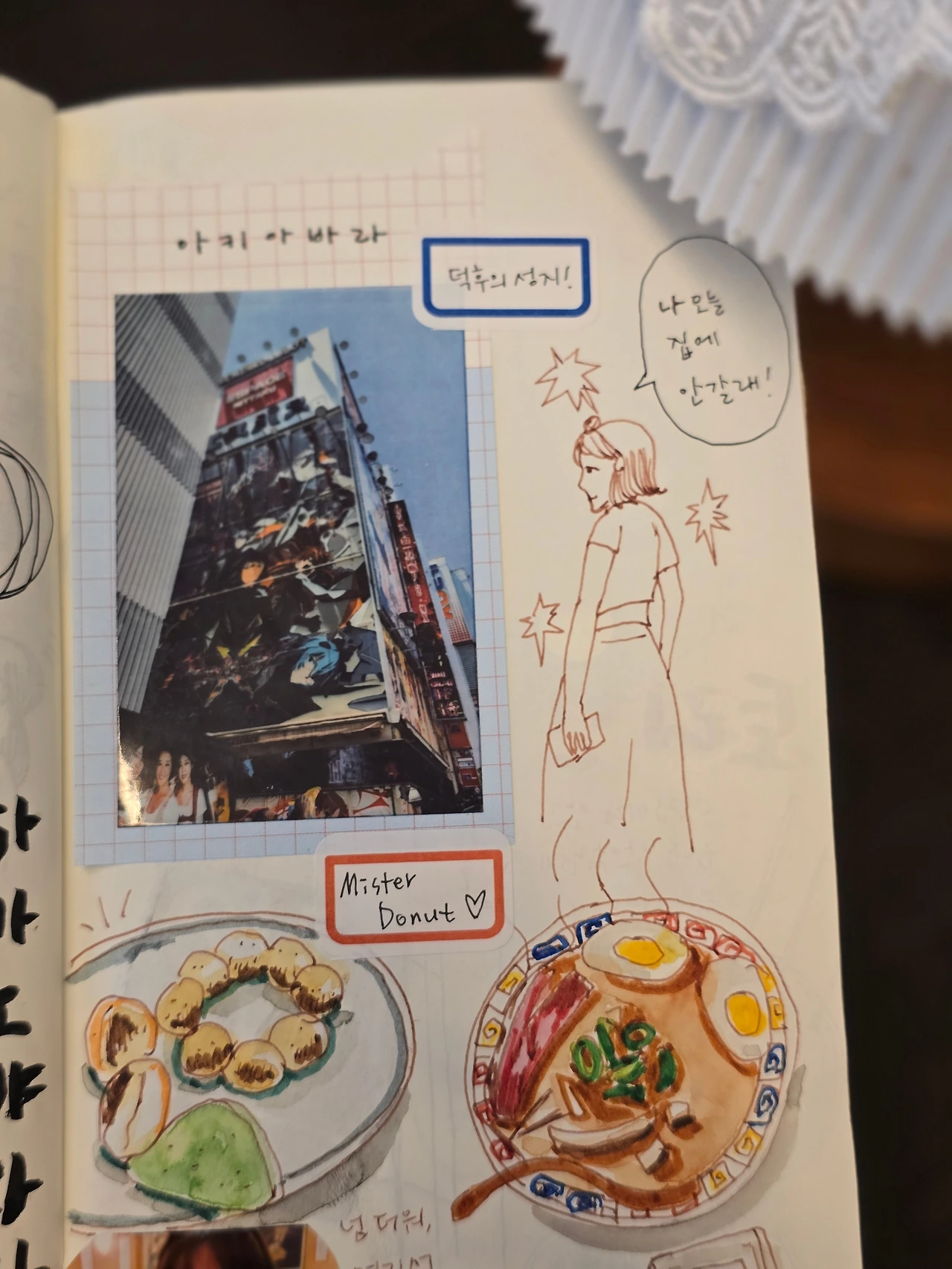덕후들의 성지에서 분위기 좋은 카페를 찾으면 안 된다는 걸 뒤늦게 깨닫고, 더위를 피해 얼른 '미스터 도넛'에 들어갔다. 한국에선 철수해 버려 아쉬웠는데 내심 반가웠다.