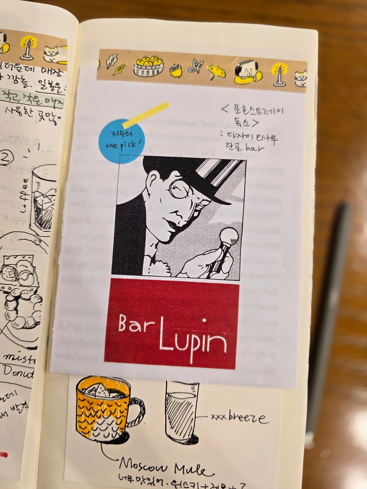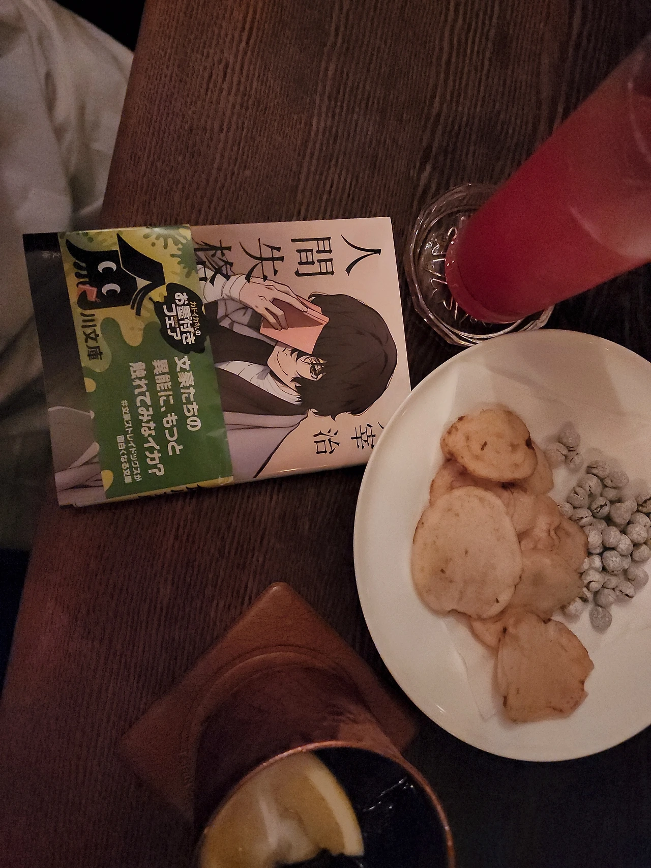 딸은 가져온 '문호스트레이독스' 만화책을 술잔 옆에 놓고 사진을 찍으며 즐거워했다. 바텐더분이 애니메이션을 보고 찾아오는 손님들이 꽤 있다고 하며 어디서 왔냐 등등 물어보셨지만 언어의 장벽으로 긴 이야기를 나누지 못한 게 아쉬웠다.