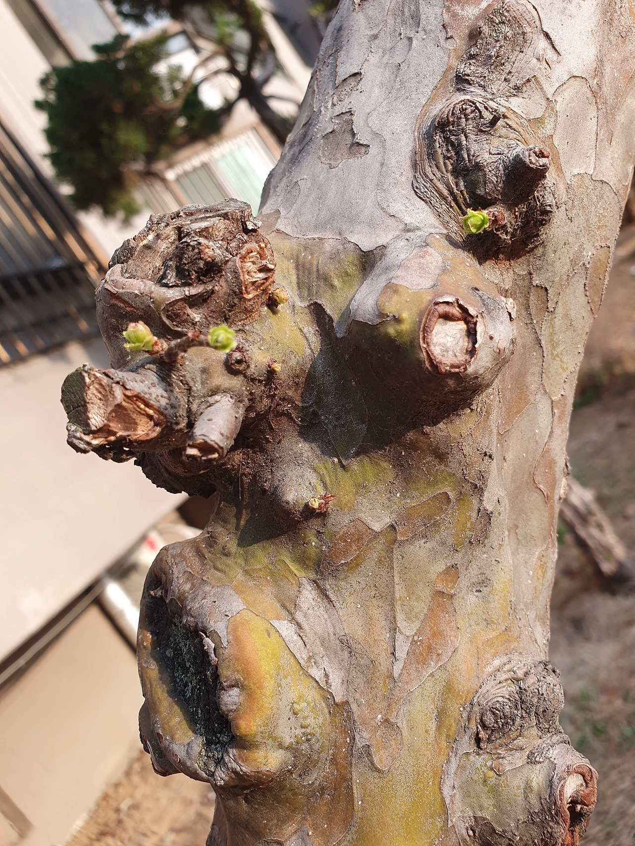 어머니집 화단의 모과나무에 예쁘게 새순이 돋았다.