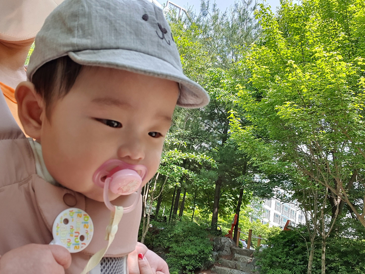 그리고 매일 아침 아기띠를 하고 산책을 나갔다. 근처에 초등학교가 있어서 등교하는 어린이들을 볼 수 있었고, 가끔은 동네 파워인싸형아가 '안녕!' 하고 인사도 해주고 지나갔다. 그 시간대는 어린이집 등원 시간이기도 해서, 쪼꼬미 형아 누나들을 만날 수 있었다. 인형같이 째꼬만 한 아이들이 저마다 야무지게 마스크를 하고 나름의 출근을 하는 모습을 보며 내 아들도 자신의 머지않은 미래를 직감했으려나.