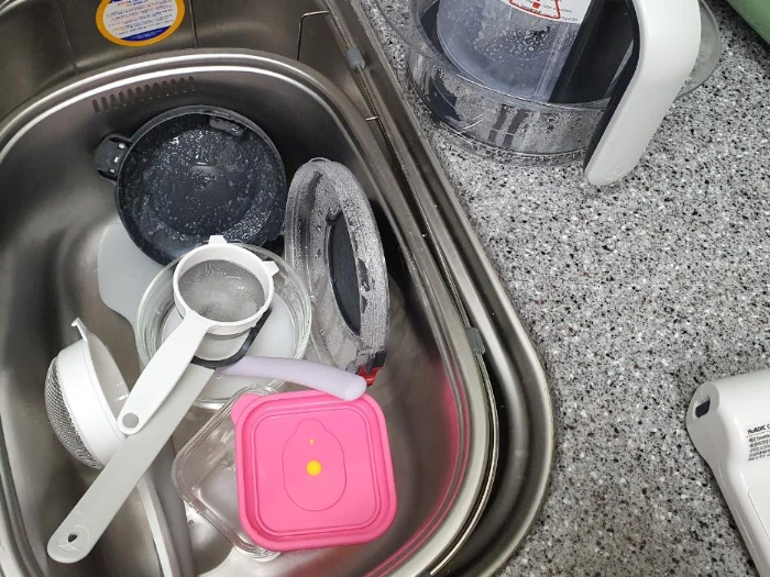 고작 쌀미음하나 해놓고 설거지는 잔뜩