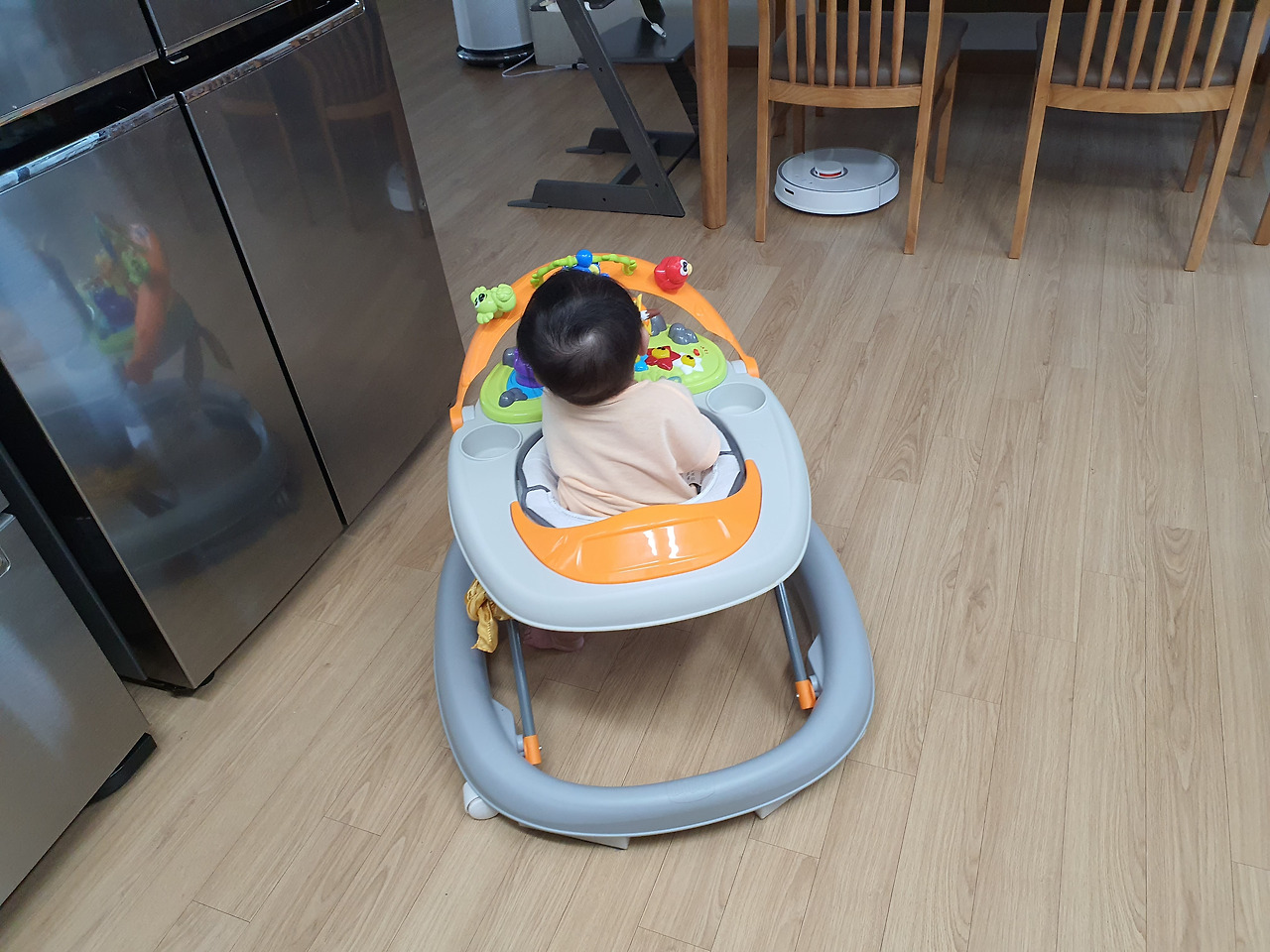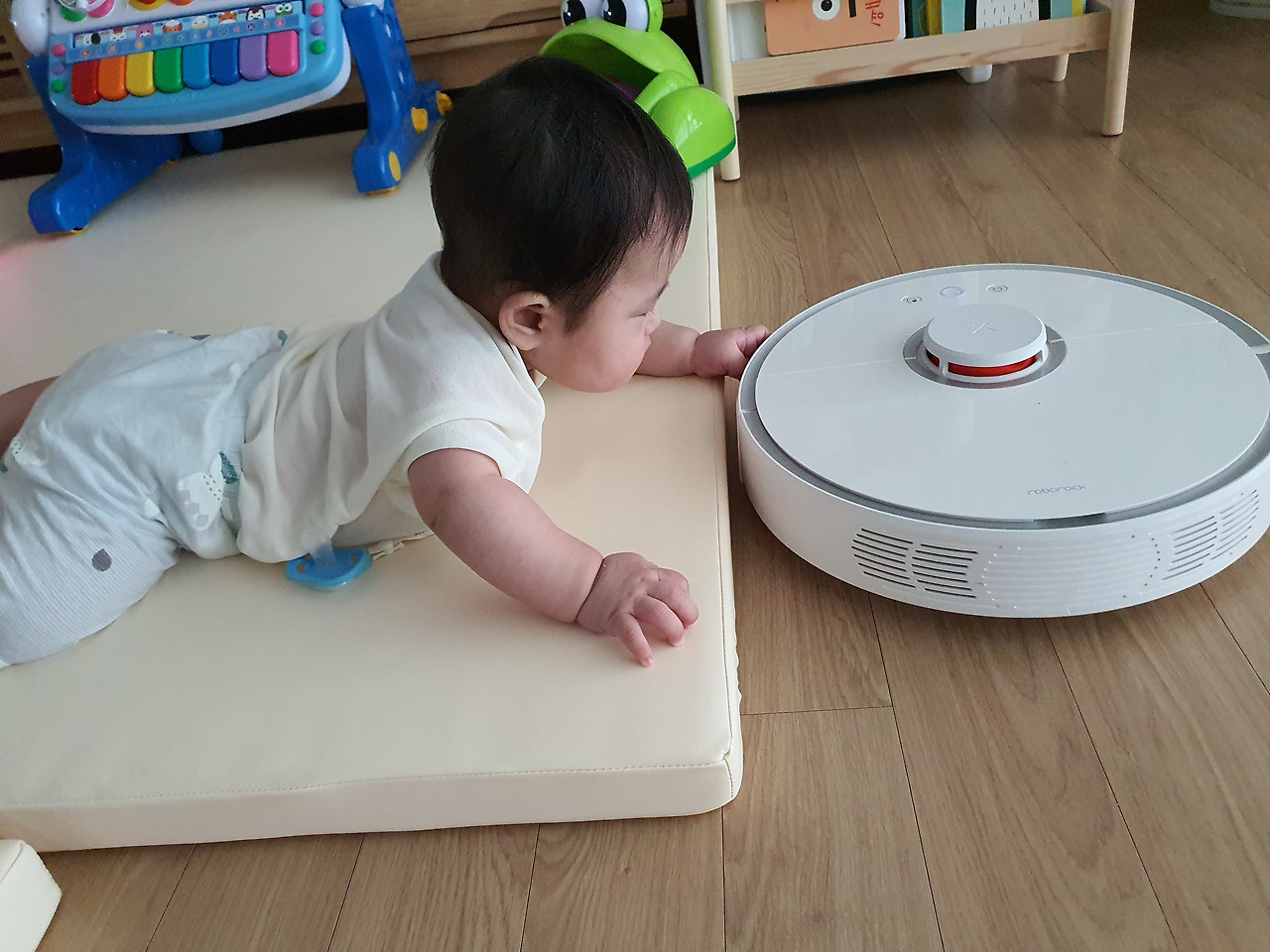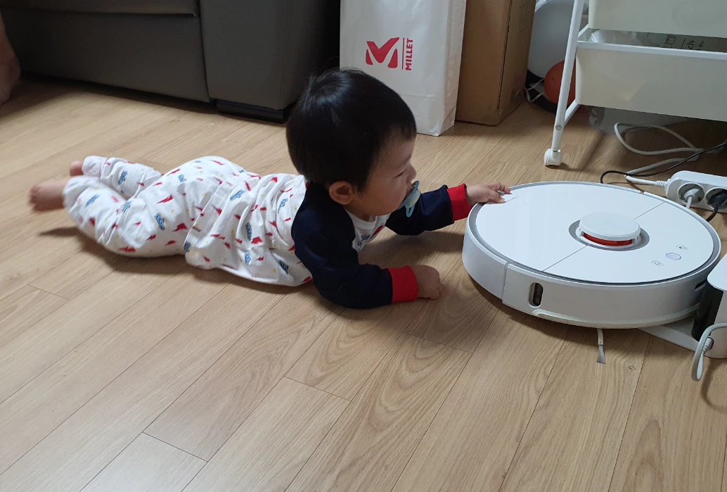 우리 집 샤모님(샤오미+이모님)은 남편을 총각 때부터 돌봐주시던 분이시다. 충전 케이블이나 코드를 씹어먹는 걸로 스트레스를 푸시고 툭하면 바닥에 있는 선풍기와 싸움이 붙으신다. 생각보다 먼지주머니가 금방 차셔서 자주 비워드려야 한다. 그래도 머리카락 뿜어내는 게 고양이 수준인 나를 잘 커버해주셨고 출근할 때 돌려놓으면 바닥에 먼지 굴러 다닐 일은 없었기 때문에 매일 이모님을 찾았다. 아기 낳기 전에는 그랬다. 아이는 샤모님을 매우 잘 따른다. 너무 잘 따른다.아주 귀신같이 잘 따른다.