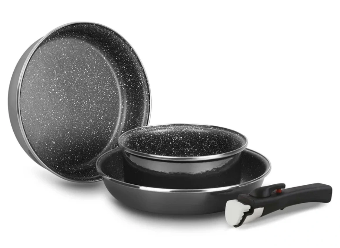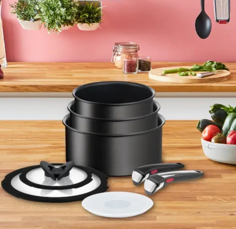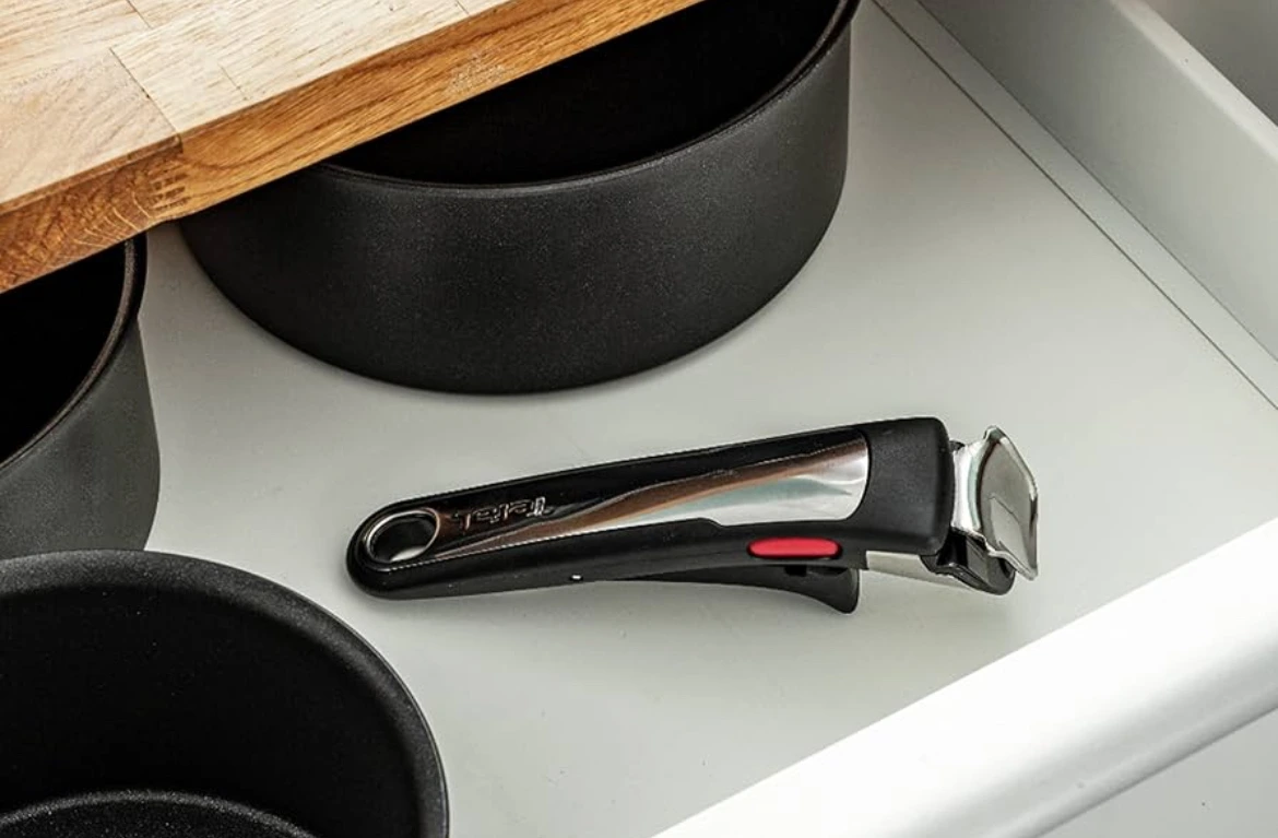 대표적인 예가 바로 ‘테팔 인제니오(Tefal Ingenio)’ 시리즈다. 하나의 손잡이를 여러 개의 냄비나 프라이팬에 끼워서 사용하는 방식인데, 필요할 때만 장착하고 요리가 끝나면 다시 떼어내어 정리하는 것.