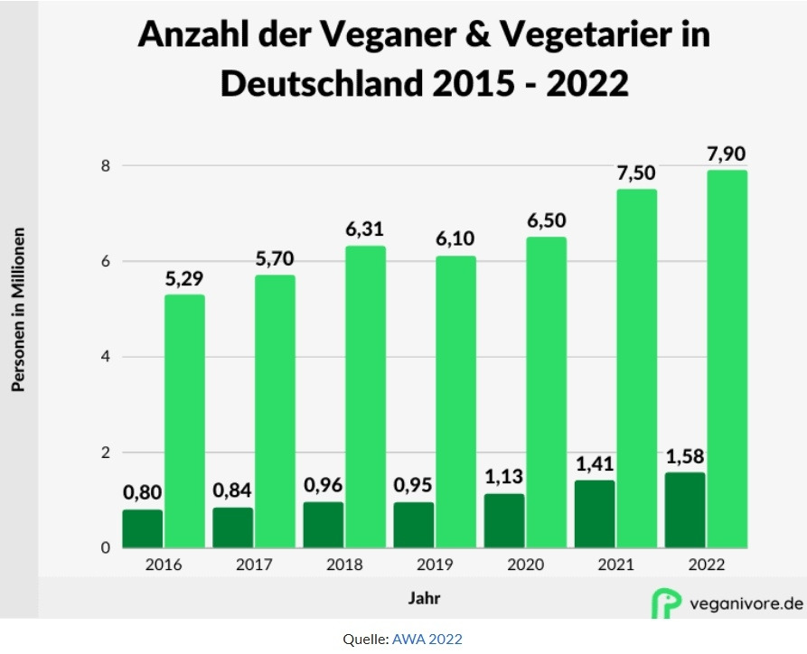 독일에는 대략 8만 명의 채식주의자들이 있고 해가 지날수록 그 수 증가하고 있다.