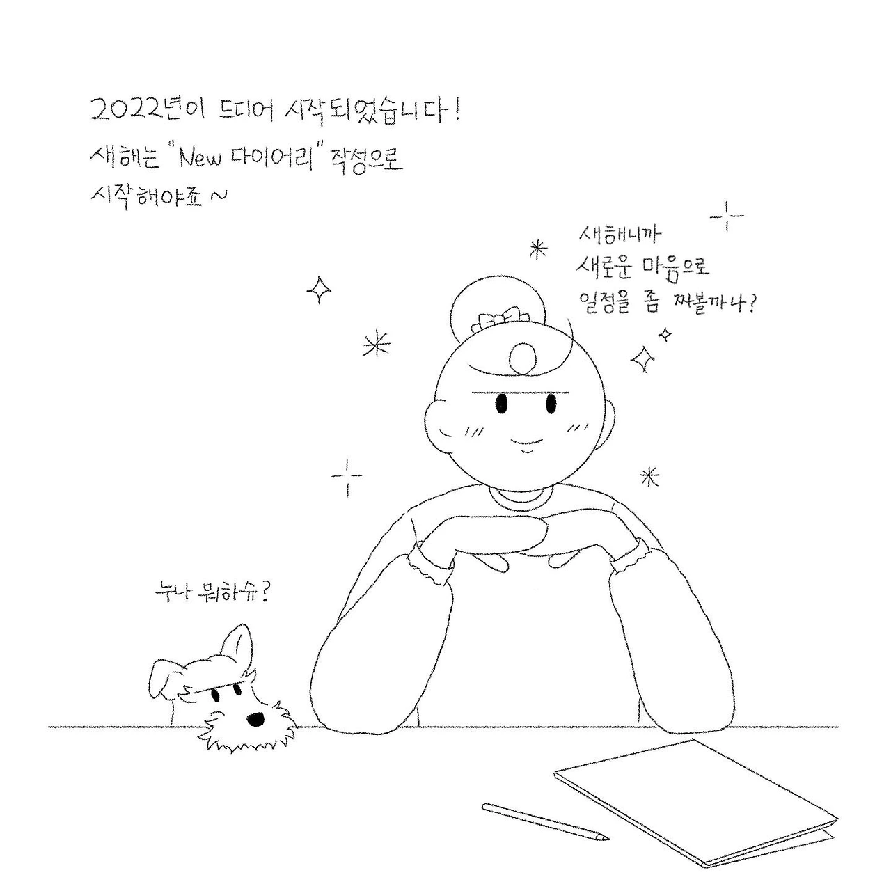 별이라는 친구와 함께하고 나서부터는 매년 계획을 짜다보면 살짝 갸우뚱해지곤 하는데요. 그 이유는 제 다이어리의 85프로 정도가 별이 일정으로 가득하기 때문입니다. 반려견 키우시는 분들은 공감해주실 거라 조심스럽게 생각해봅니다만... 반려견을 키우는 사람의 신년 계획이랄 게... 사실 별거 없거든요. 혼자 집에 있을 별이가 눈에 밟혀 밖에 일을 빨리 마무리하고 집에 간다거나, 별이가 산책 혹은 병원을 가야 할 때 그 일정에 맞춰 밖에 나가게 되고, 어딜 가도 별이와 함께 갈 수 있는 곳을 검색해서 찾아가게 되는 등 모든 게 별이 위주로 돌아가게 됩니다. 가끔은 그 일정만으로도 하루가 벅찰 때도 있답니다. 약속이 생겨도 상황을 보고 일정을 조절하거나 어쩔 수 없이 취소하는 등 별이 위주로 돌아가는 세상에서 틈틈이 개인 일정을 소화하는 남들이 보면 꽤 빡빡한 삶을 살고 있습니다.