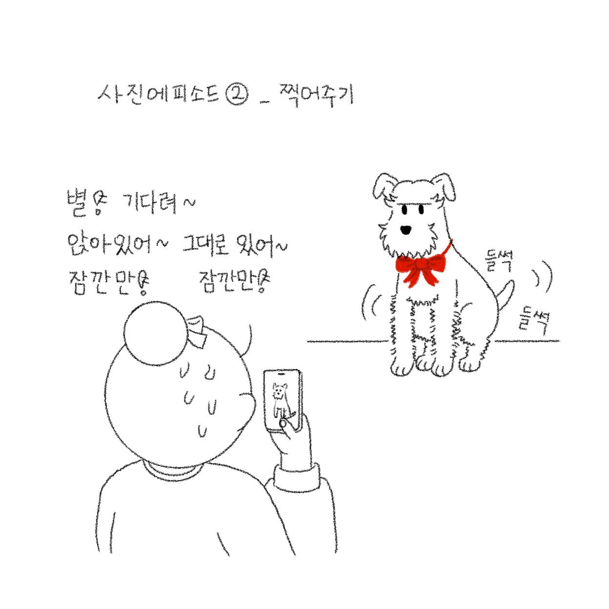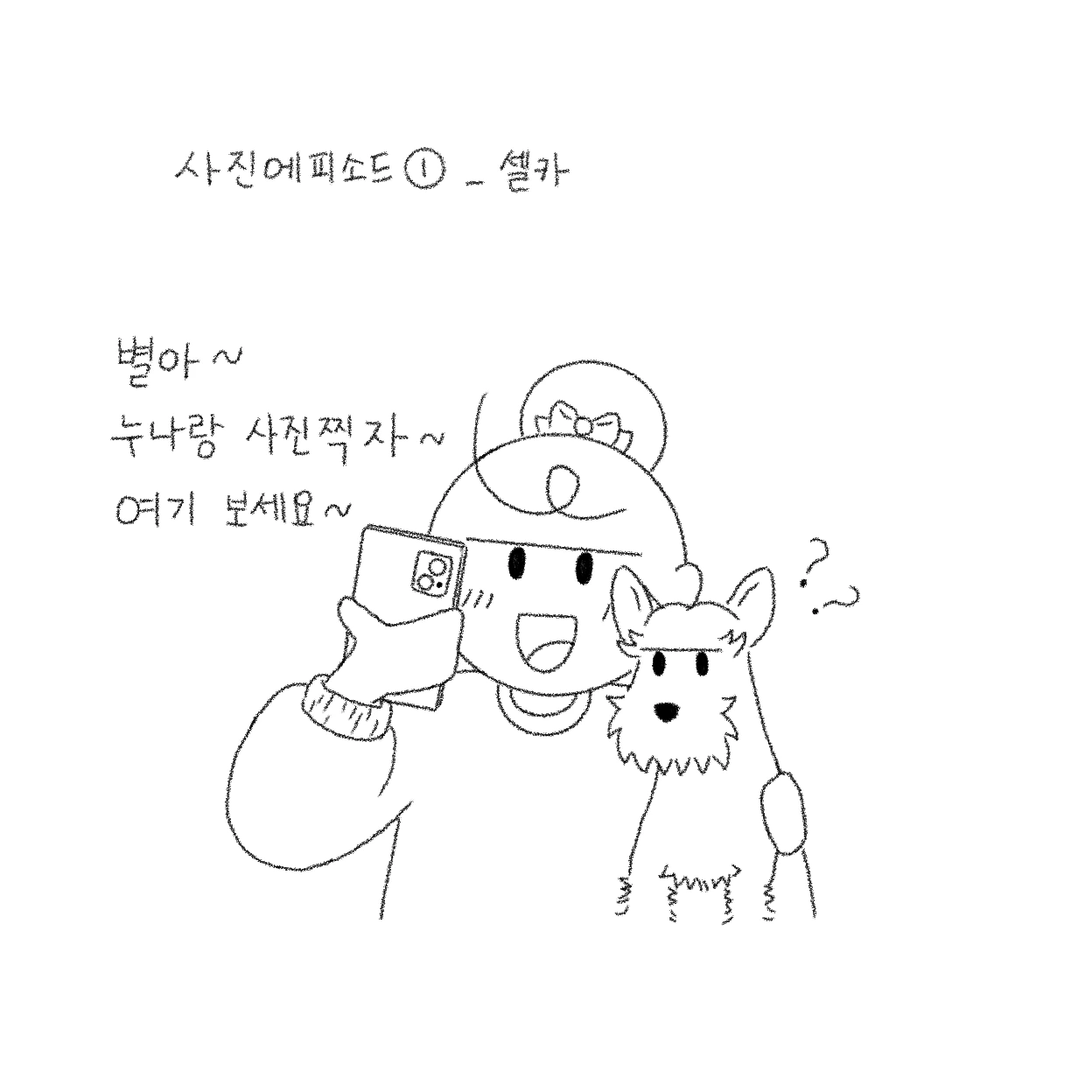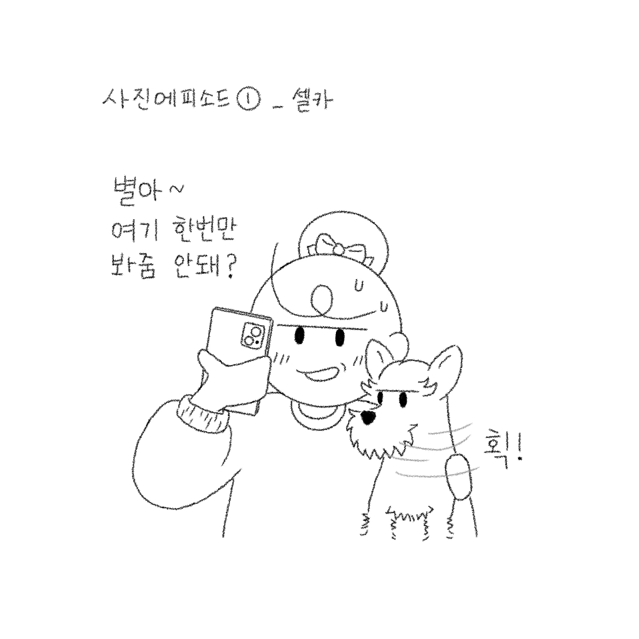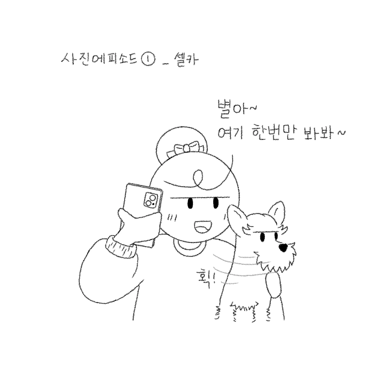 개 키우면서 의외로 어려운 건 사진을 찍는 것이다. 모든 반려인들이 매 순간 귀여운 나의 반려견의 모습을 사진으로 찍어서 보관하고 싶어 하기 마련. 핸드폰의 사진첩을 열어보면 별이 사진이 70프로를 차지할 정도...(별이 그림까지 더해져서 거의 90프로…). 그렇지만 의외로 반려견의 정상적인(?) 사진을 찍기란 굉장히 어렵다. 물론 개들마다 성향이 달라서 잘 있는 친구들도 있겠지만…