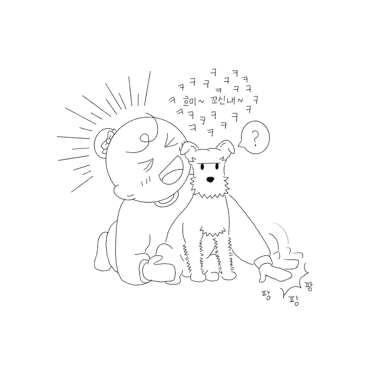 그런데 신기한 건 이 모든 냄새가 사랑스럽게 느껴진다는 것이다. 나는 종종 괜히 별이 발바닥 냄새를 맡으며 "으 꼬린내~" 라며 한껏 웃으면서 다시 또 그 냄새를 맡곤 한다. 모르는 어떤 이가 보면 아마 미쳤다고 할 것이다. 어느 누가 꼬린내를 스스로 맡고 좋아할까? 내가 생각해도 미친 것 같다. 꼬릿 꼬릿 찌린내 나는 발 냄새는 구수하게 느껴지고, 쉰내 나는 입 주변을 수시로 맡으면서 좋아하는 것을 보면 말이다.