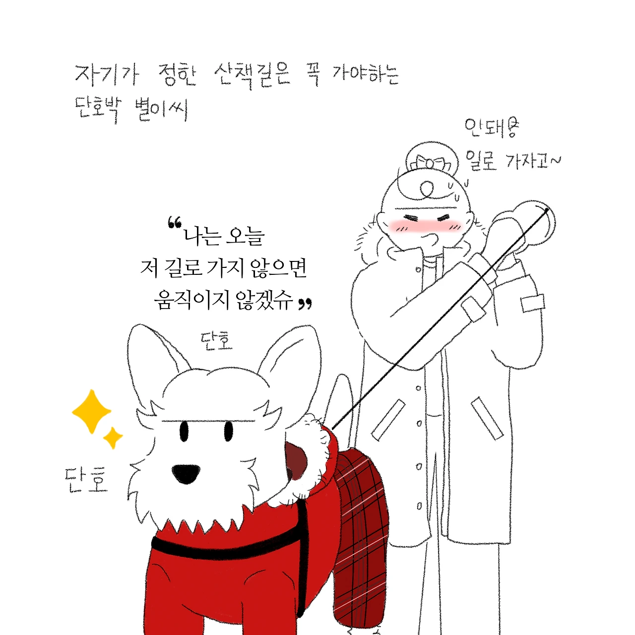 반려견의 산책은 은근히 까다롭다. 별이의 경우, 자기가 가고자 하는 루트가 한 대여섯 개 정도가 있고 특이한 경우가 있지 않고서는 한번 갔던 루트를 다음 날 또 가는 경우는 극히 드물다. 그리고 왔던 길을 다시 되돌아가려 하지도 않는 편. 그래도 예전에는 강제로라도 가자하면 따라왔었는데 요즘은 나이가 들어서 그런지 자기가 가려고 정한 산책길을 가지 않으면 움직이지를 않으니... 꾀가 늘었는지 가끔 보면 보통 녀석이 아닌 것 같다.