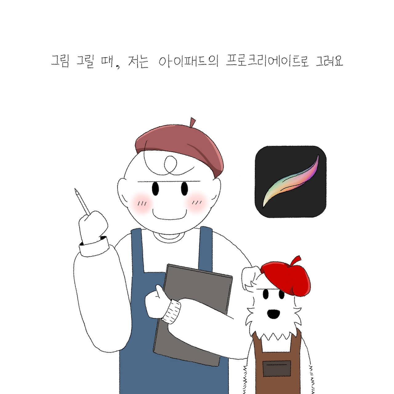 제가 본격적으로 그림을 그려보기 시작한 건 남동생에게 아이패드를 선물 받고부터입니다. 아이패드를 그냥 OTT나 유튜브 보는 용도로만 사용하는 게 아까워 어떻게 활용해볼까 생각하다가 좋은 애플리케이션들 중에 그림 그리는 프로크리에이트를 알게 돼서 장난 삼아 그리기 시작한 게 이제 1년 가까이 되어가네요.