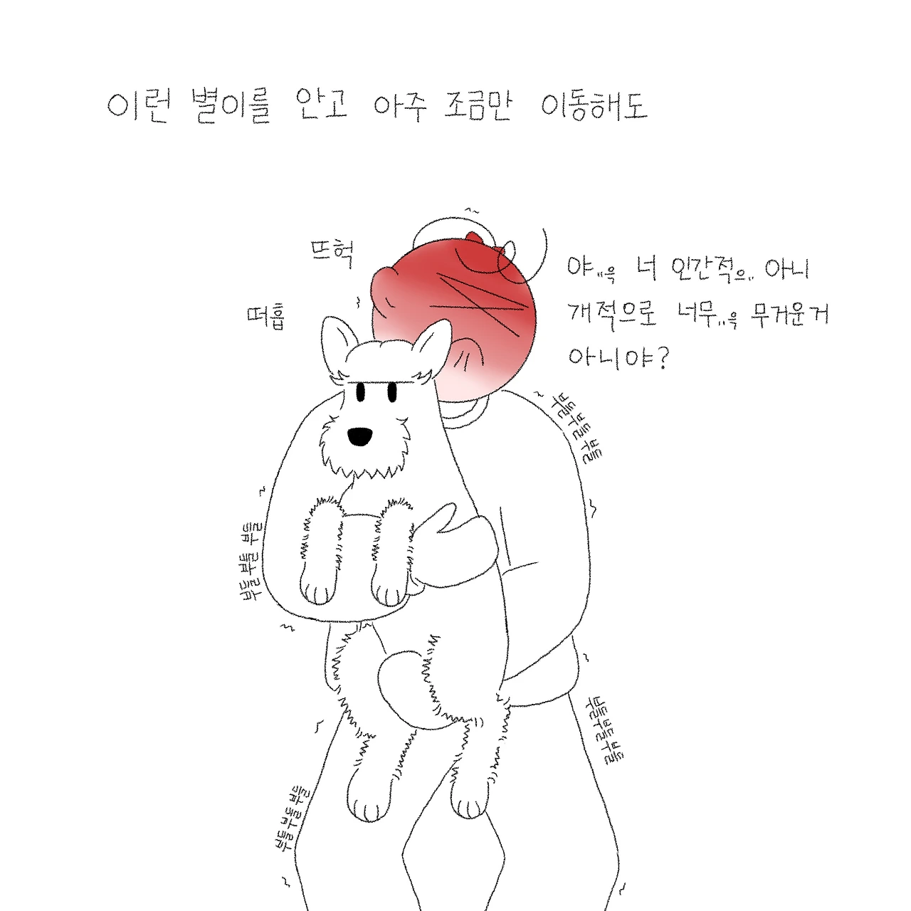 나이가 든 별이는 하루하루 다르게 변해가고 있습니다. 나이가 드니 기력도 빠지고 암이라는 병도 가지고 있다 보니 금방 지치곤 합니다. 2~3시간을 산책해도 거뜬했던 별이었지만 이제는 산책한 지 얼마 지나지 않았는데도 지쳐서 걸음을 멈추거나 안아달라고 표현을 하곤 합니다. 그럼 참 난감해집니다. 별이는 슈나우저 치고도 체구가 큰 편인 데다가 최근엔 살이 더 쪄 몸무게가 13킬로를 넘어섰기 때문이에요.